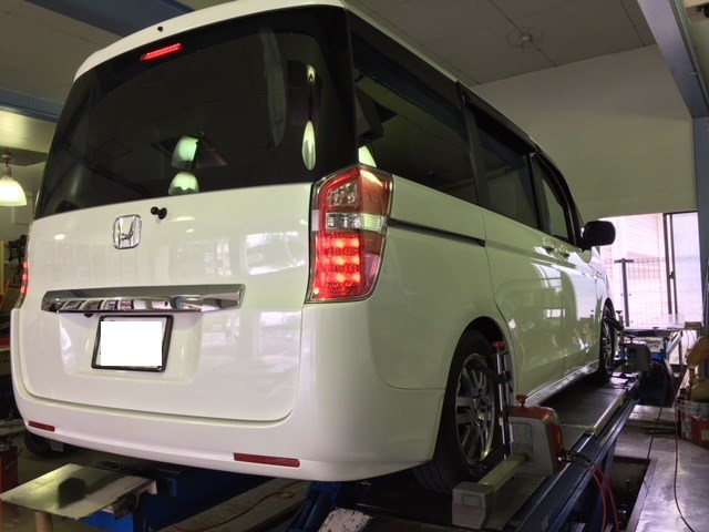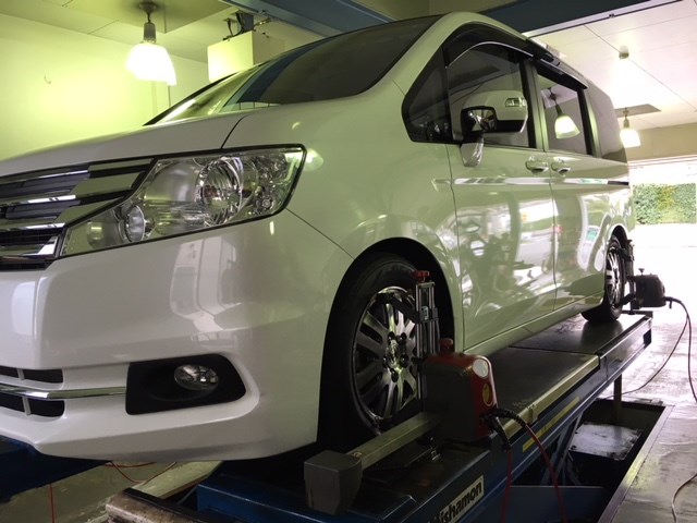 前日車高調を取り付けさせていただいたステップワゴンのアライメント調整をさせていただきました☆
