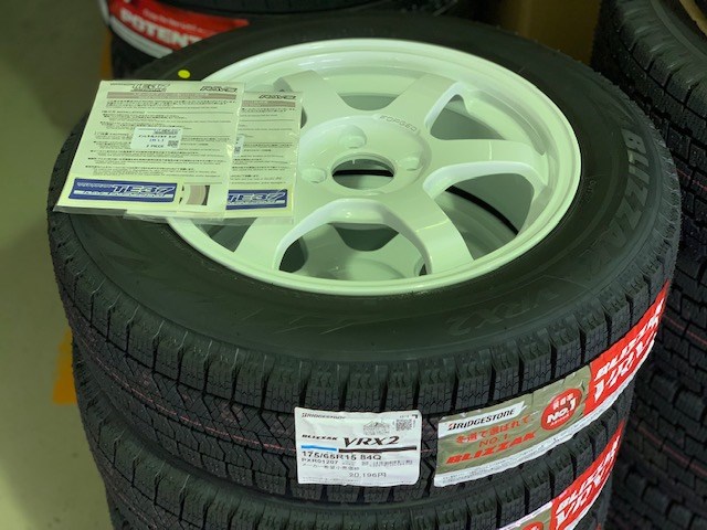 ヴィッツGRの純正ホイールは17インチなのでスタッドレス用に15インチにインチダウンさせていただきました(^^)