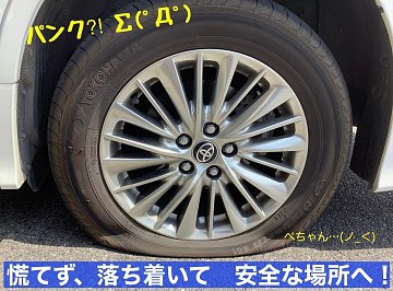 お出かけ前は「タイヤのチェック」忘れずに~!! パンク?!( ;∀;)のときは、慌てずに落ち着いて安全な場所へ!!