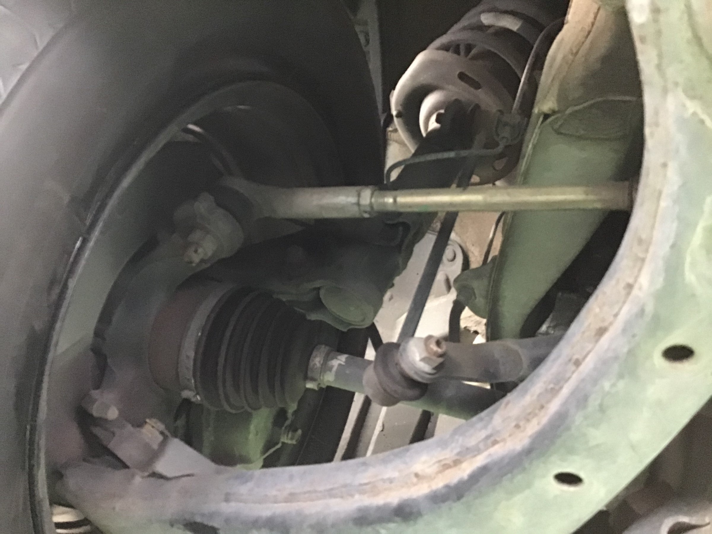 フロントのトー角の調整はこの横長のロッド≪タイロッド≫を調整することで変化が起きます。