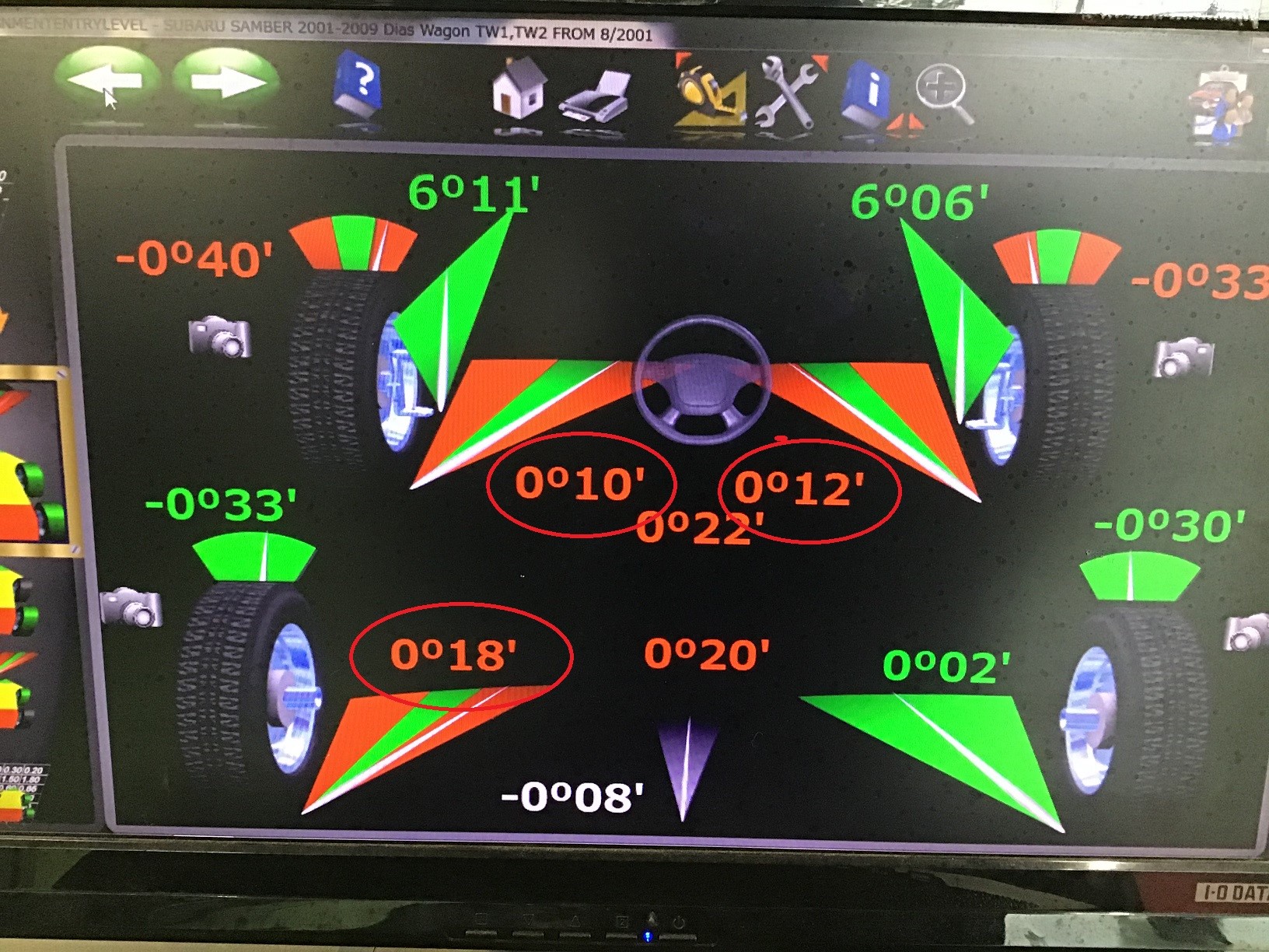 全体的にトーインにズレが生じていて偏摩耗や直進安定性を欠如させてしまう原因になりえます"(-""-)"