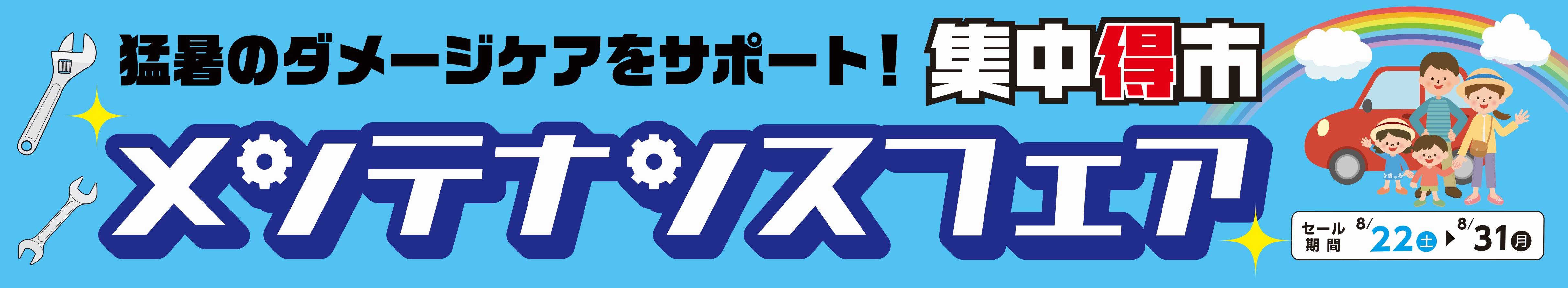 また、集中得市も8月31日まで開催しておりますので、皆様のご来店お待ちしております。