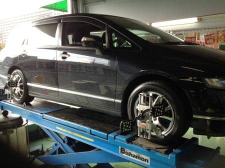 今回のお車:オデッセイは、タイヤ1本につき、1箇所調整が出来るタイプのお車です。