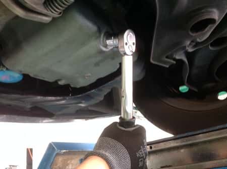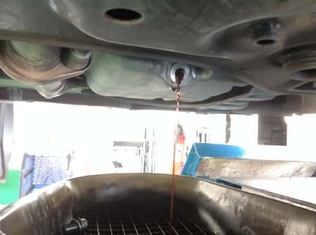 当店のオイル交換はオイルを下からぬいてドレンパッキンを