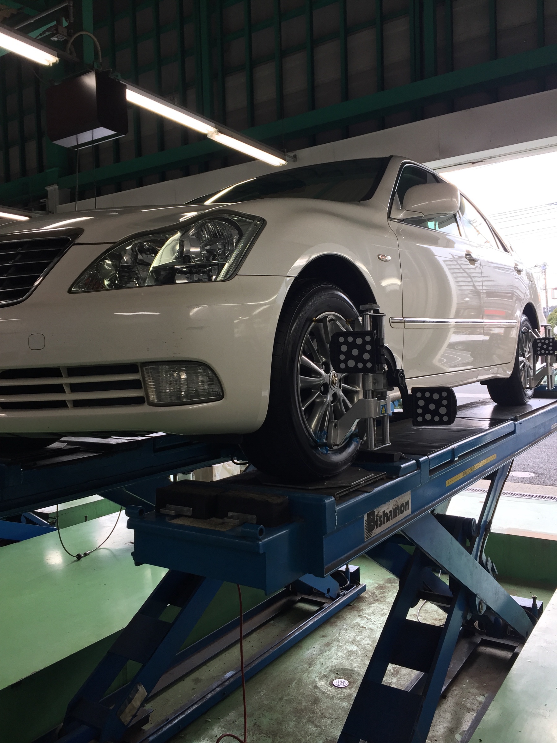 走行距離は160000kmとなりますが、定期的にアライメント調整をして頂いており、大幅なズレは無く、少しの調整で作業終了となりました。