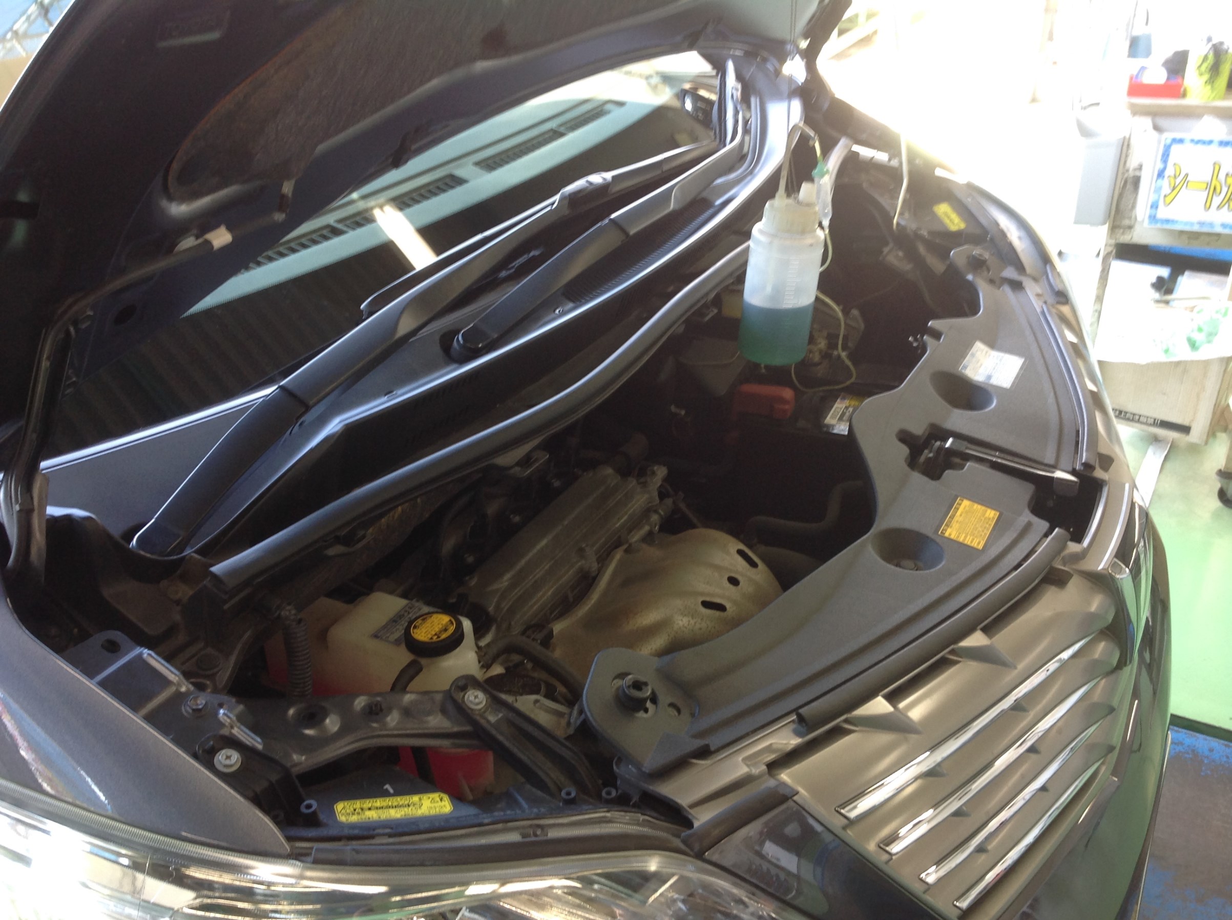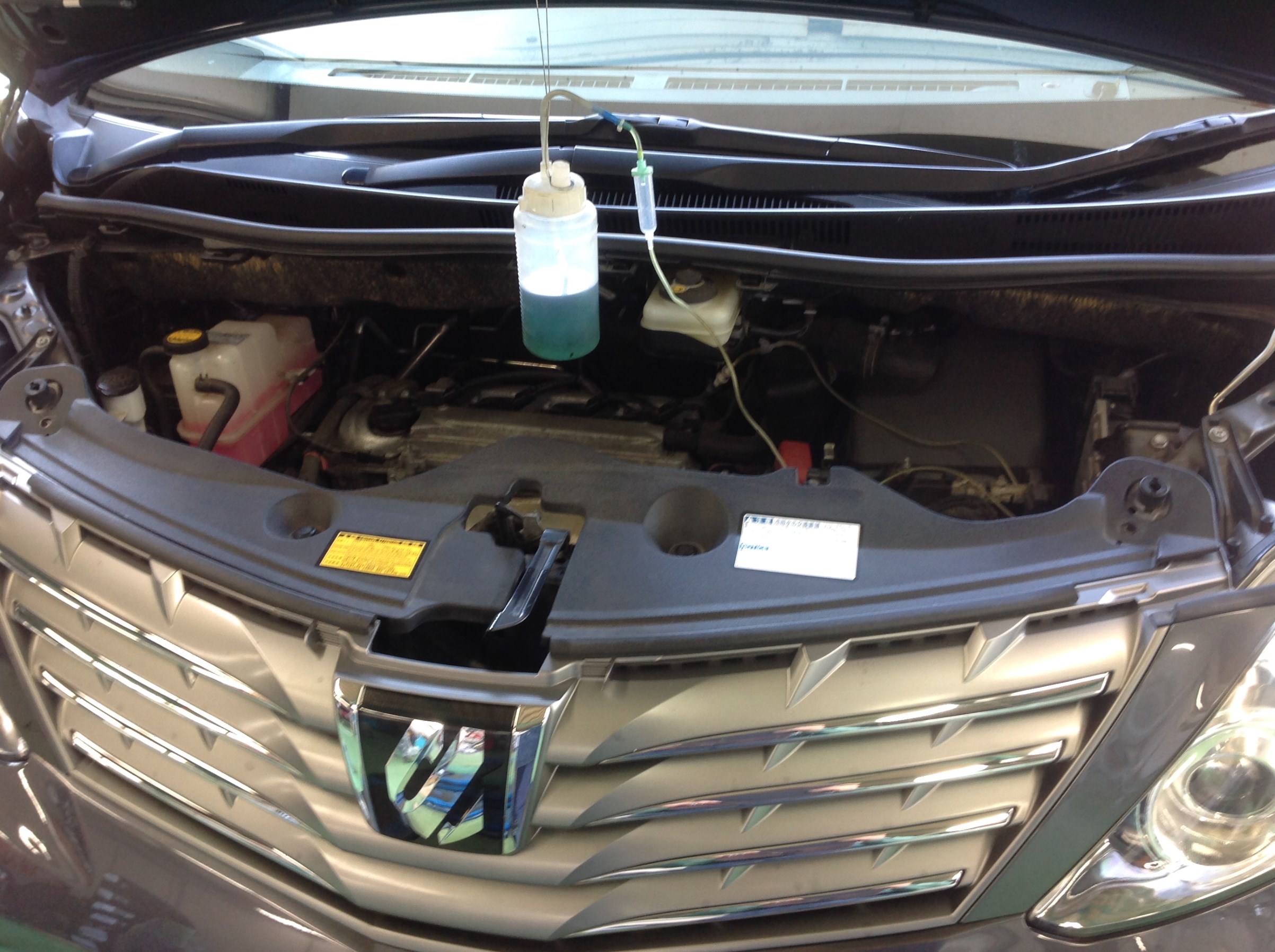 人間の点滴のような感じで溶剤を少しずつエンジンに注入していき エンジンの吸気系統をキレイにします