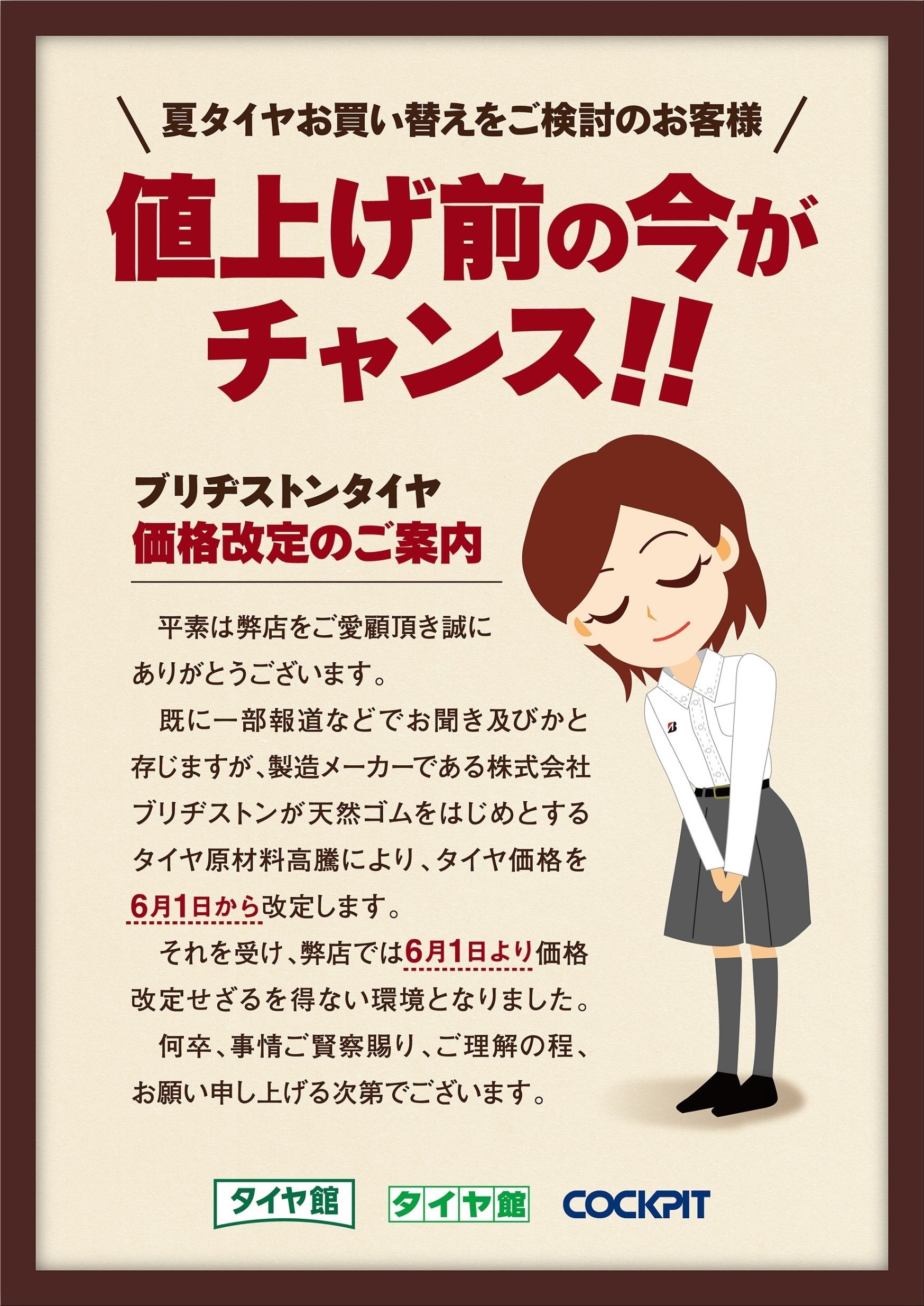 それを受け、タイヤ館成田でも同日より、