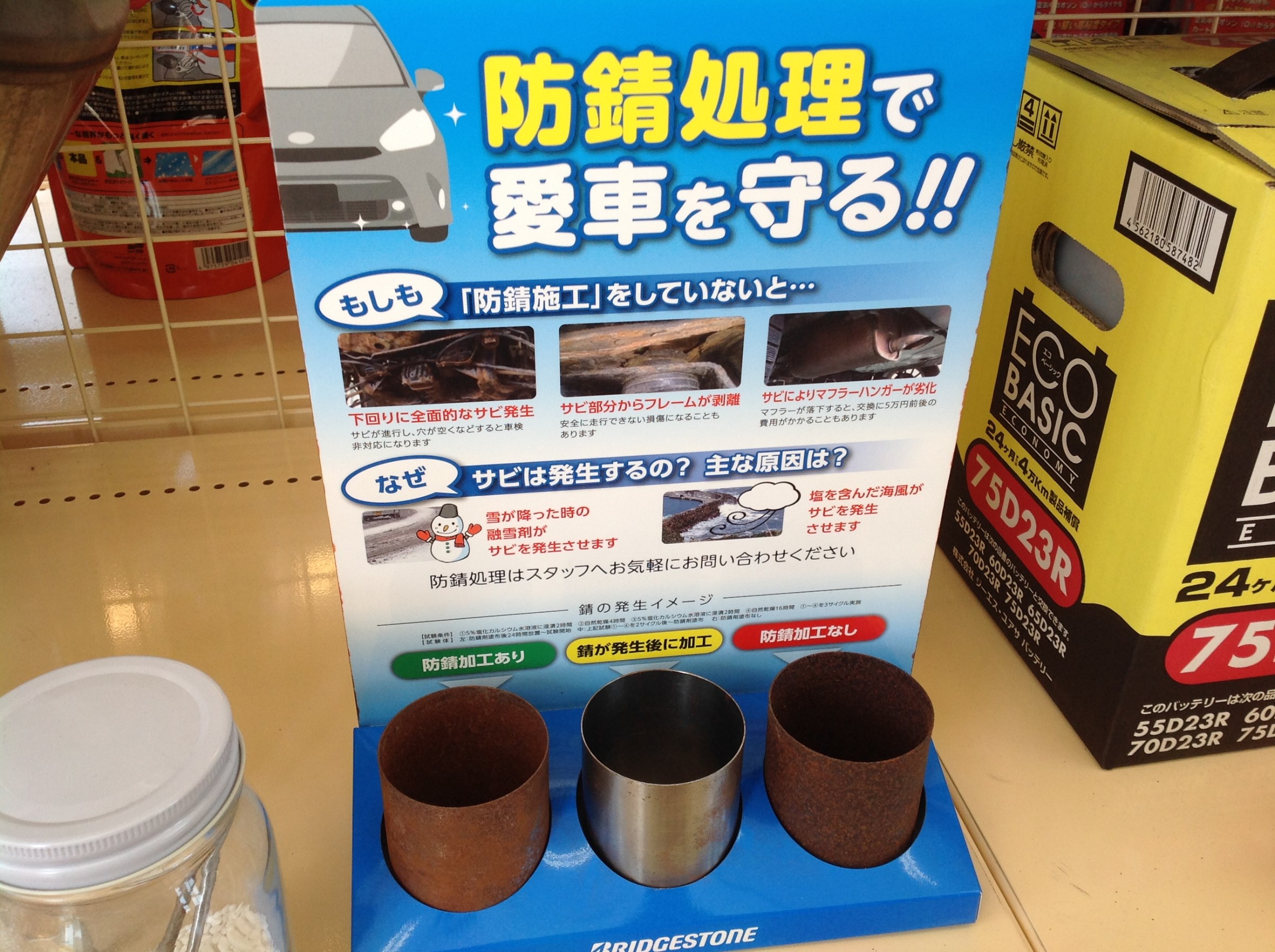 タイヤ館ではお車の錆を防ぐ防錆コーティングを行っています。