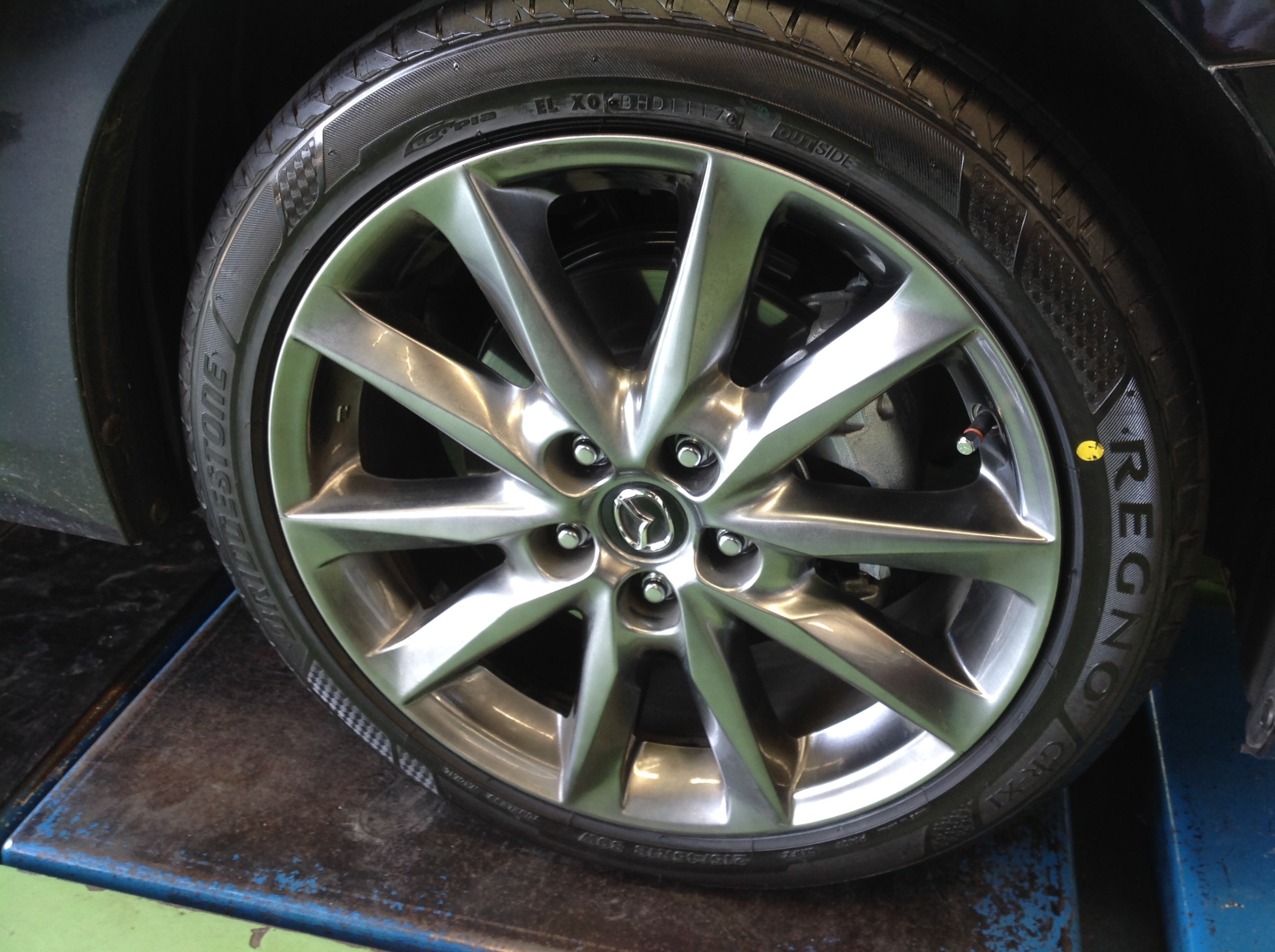 アクセラのお客様にレグノ GR-XI タイヤ交換と 空気圧センサーTPMSお取り付けさせて頂きました。
