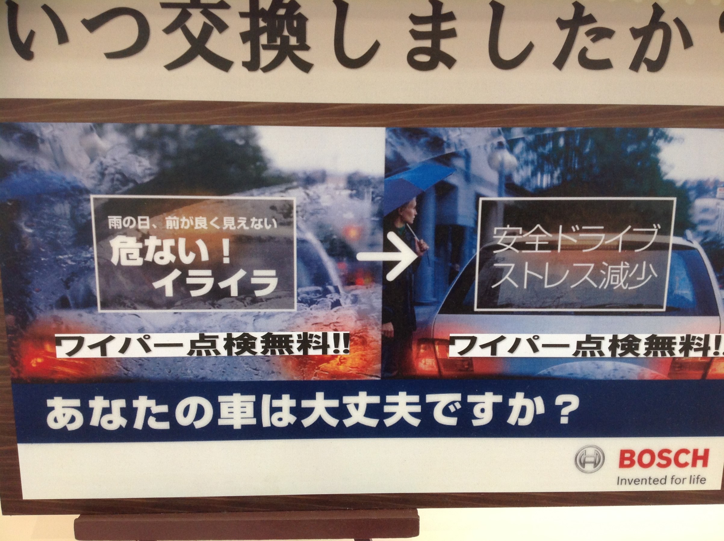 最近雨ばかりですが、皆様ワイパーは大丈夫でしょうか?