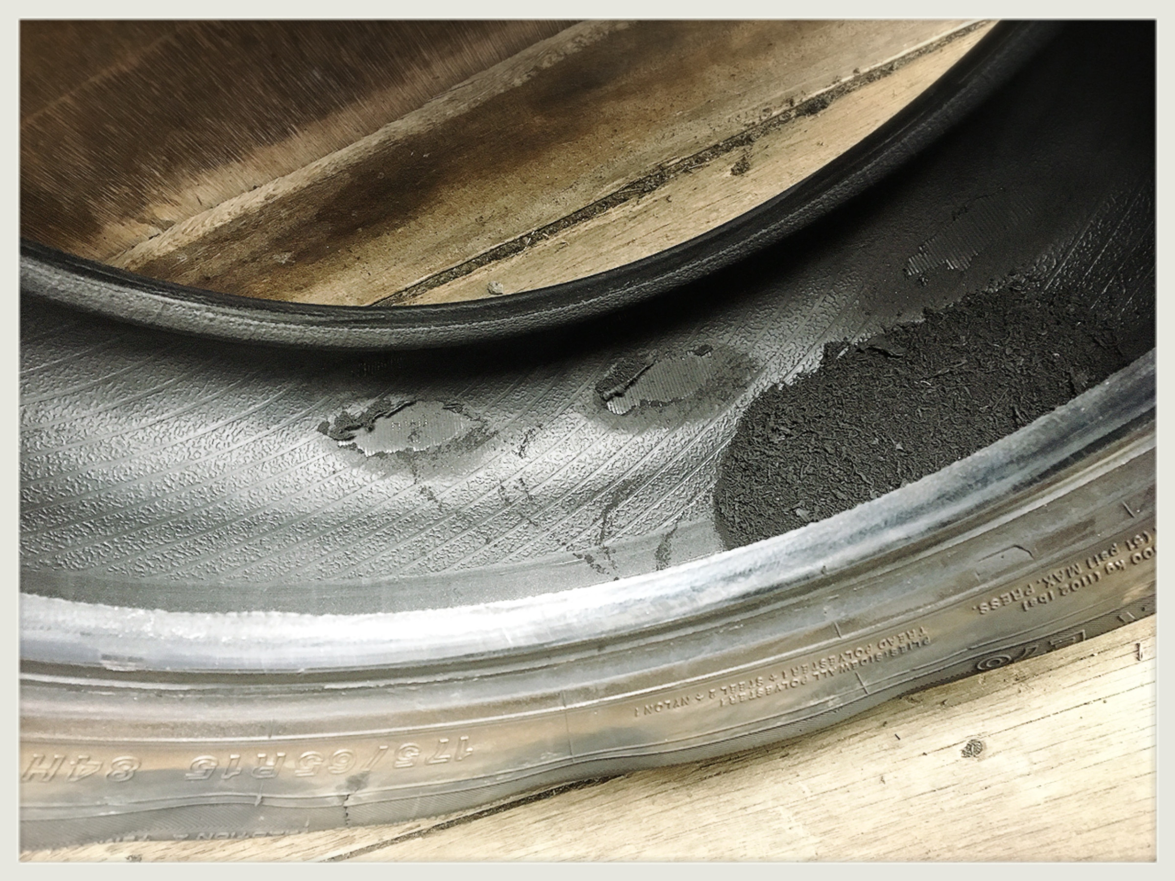 そして、そのまま走行をしてしまったことで、タイヤ内部が擦れて中は粉々に~Σ(O_O;)!!
