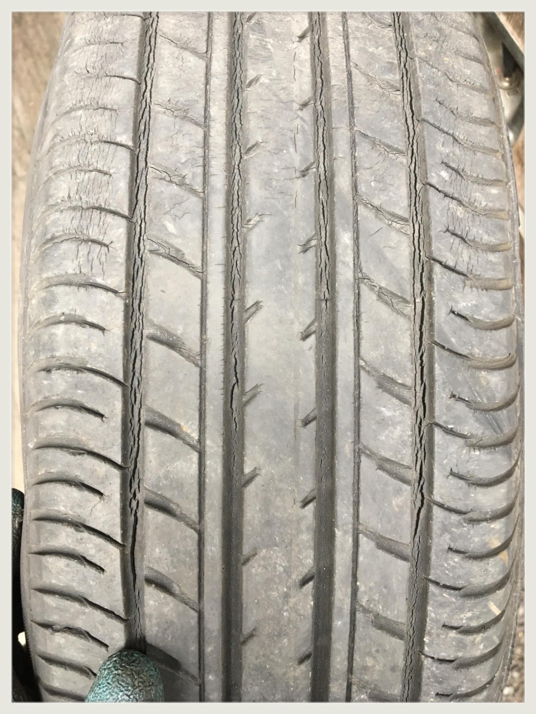 同時にその他3本のタイヤのヒビ割れも、安心して走行をおすすめできる状態ではなかったため、一緒に交換となりました!!