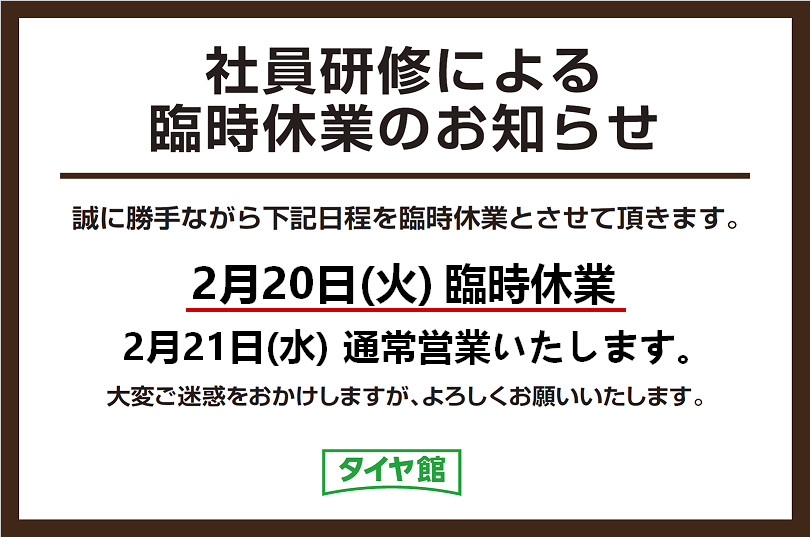 作業のご予約やお出かけ前のタイヤ点検など、下記カレンダーをご参照ください。