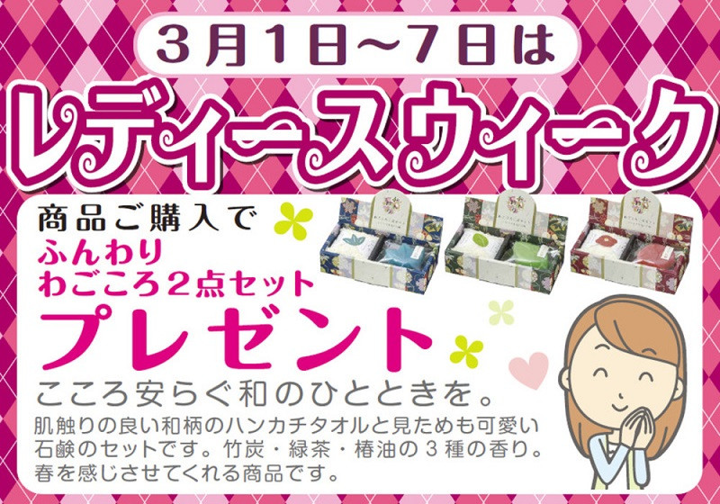 【レディースウィーク】は、女性のお客様限定の特別イベント゚+.゚ポッ(o´∪`o)ポッ゚+.゚