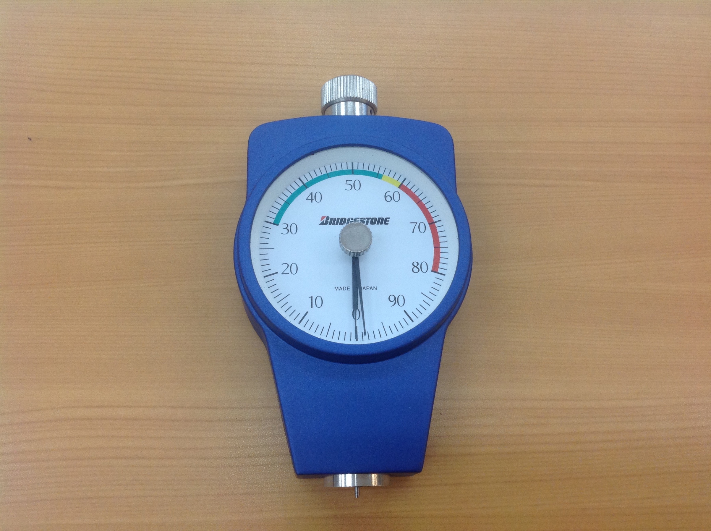 当店ではタイヤの硬さを調べる硬度計を使い皆様のスタッドレスタイヤの硬さをお調べ出来るんです!