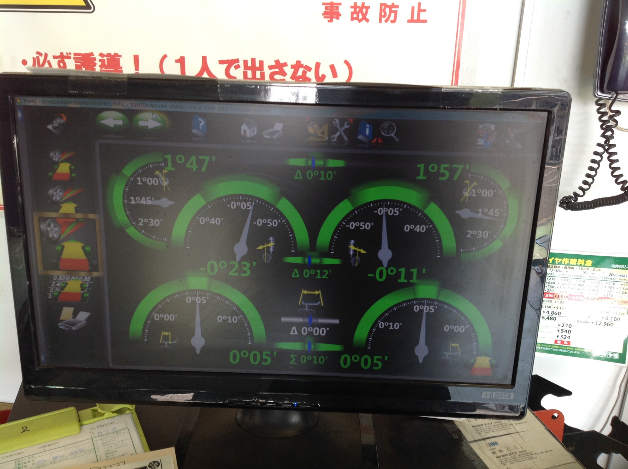 本日は【グランドハイエース】の四本交換とアライメント調整を行いました。