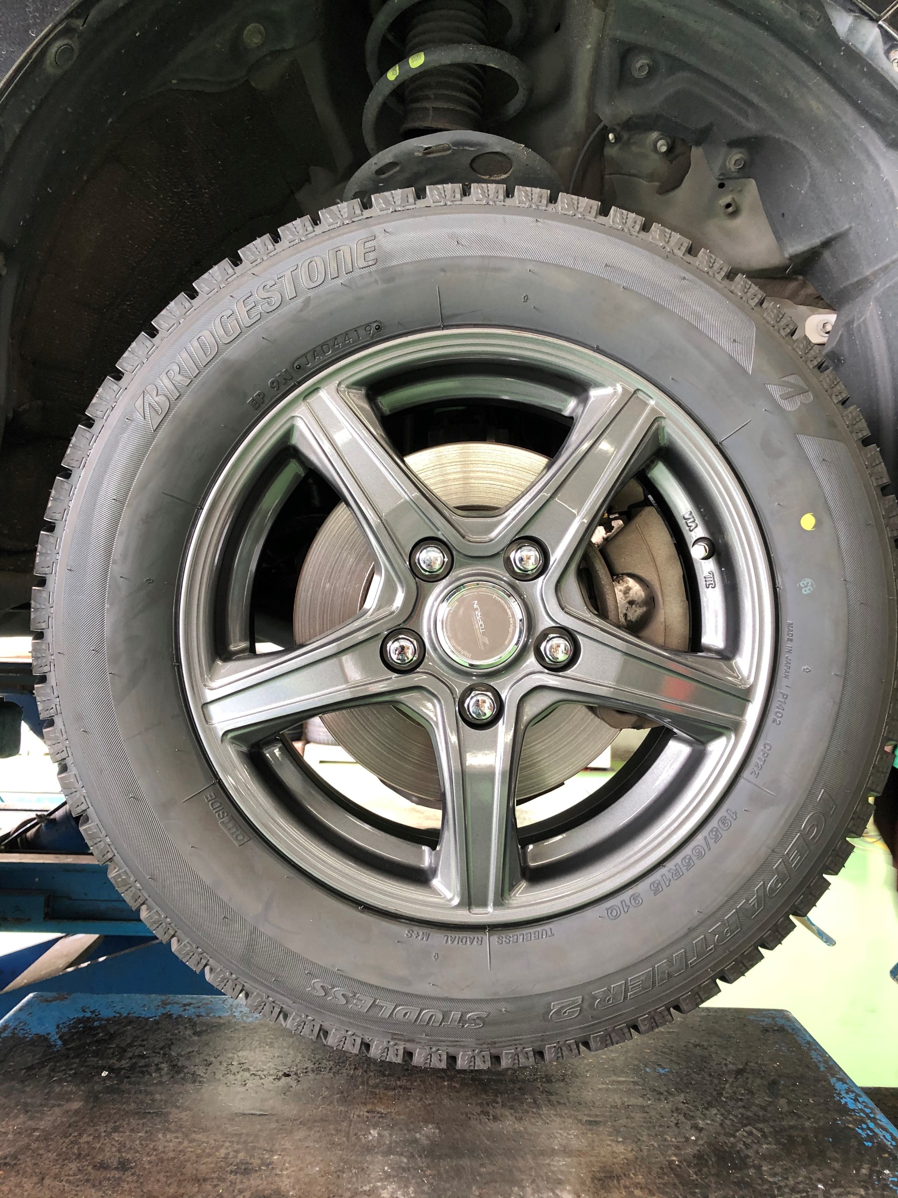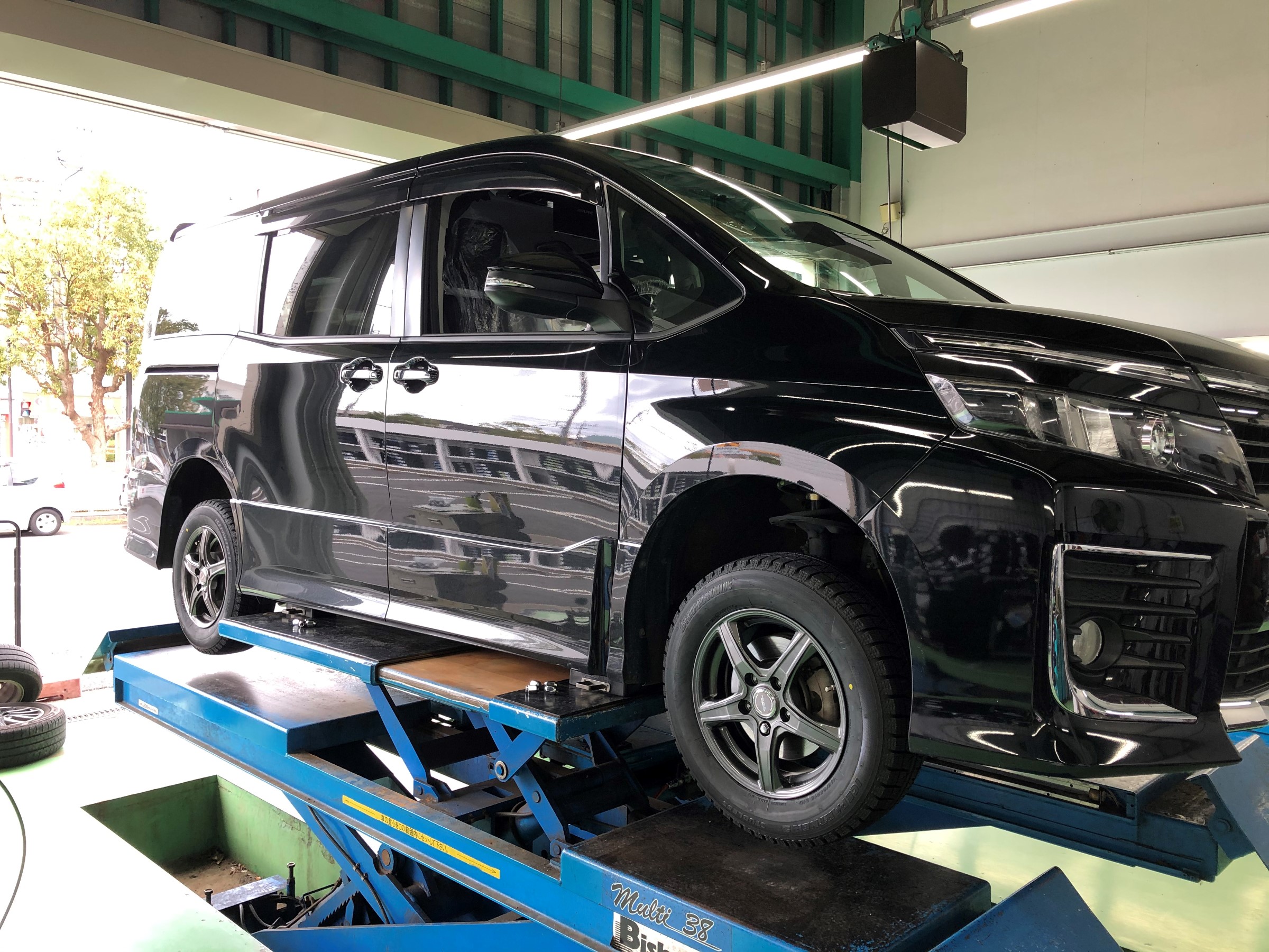 本日は、ヴォクシーのお客様へスタッドレスタイヤの取り付けをさせていただきました。