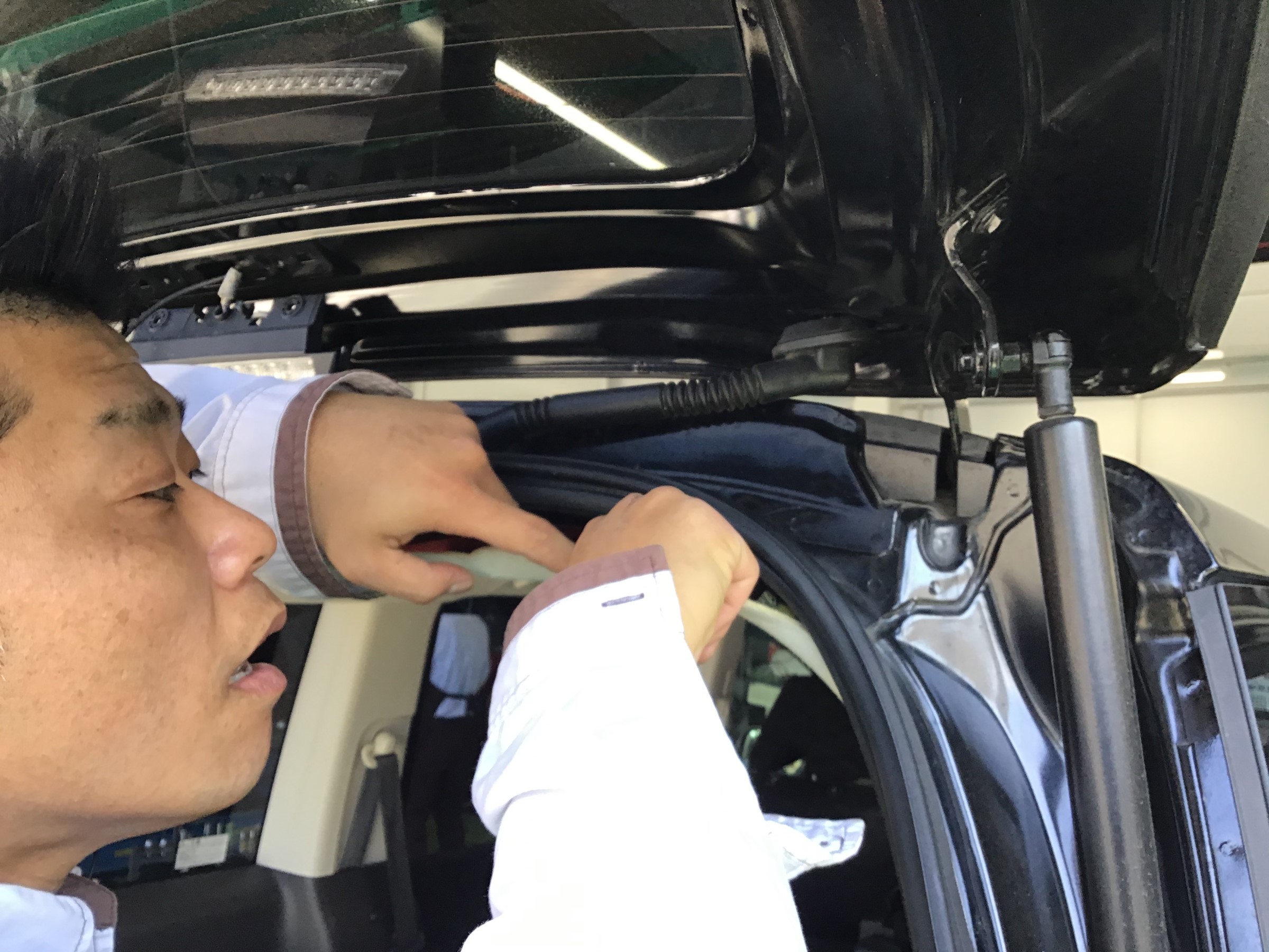 ワゴン車のハッチバックは少々配線を通すのが大変です(^^♪