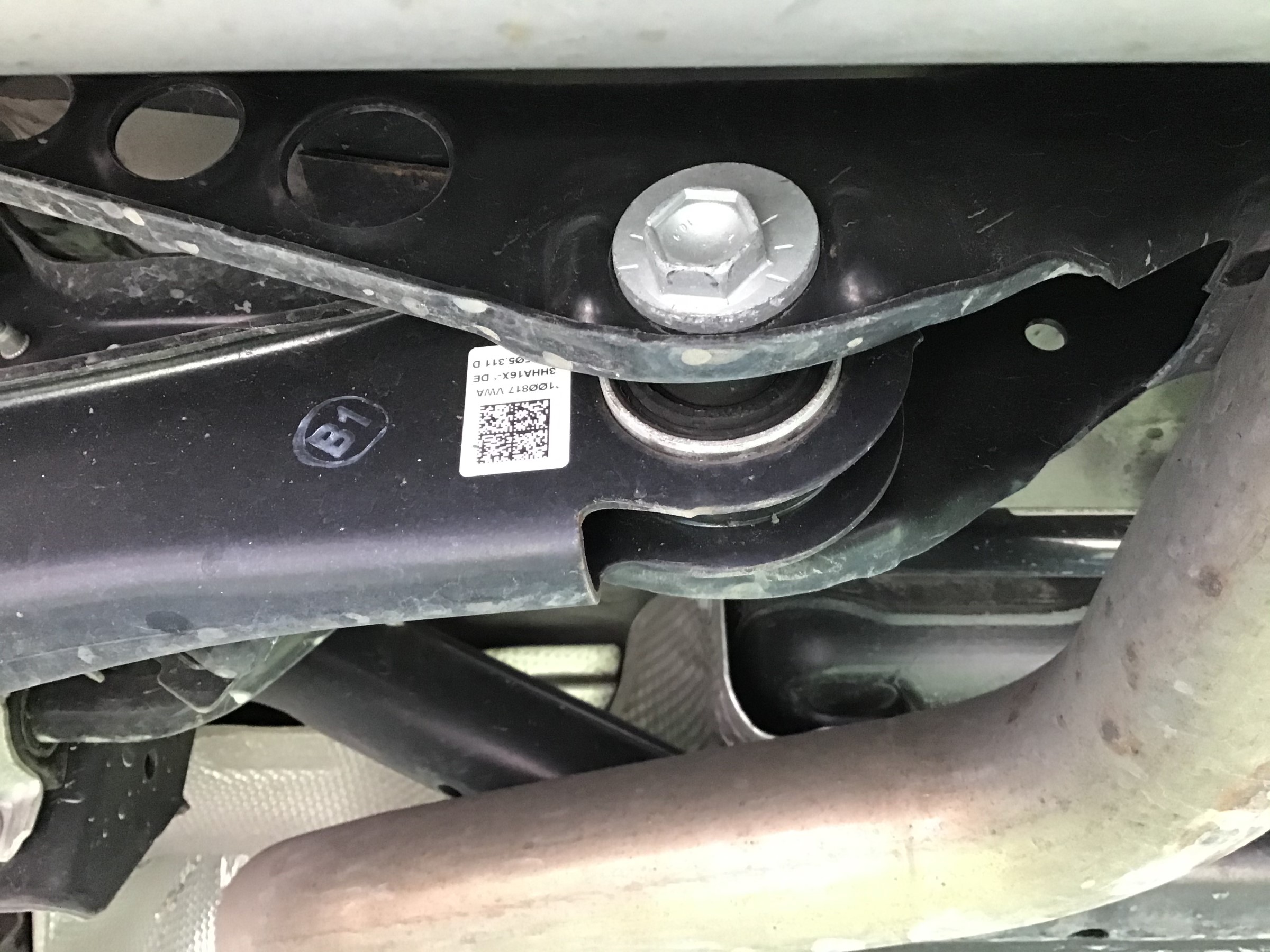 リヤの偏芯カム。このボルトを回してトー角を調整します。。
