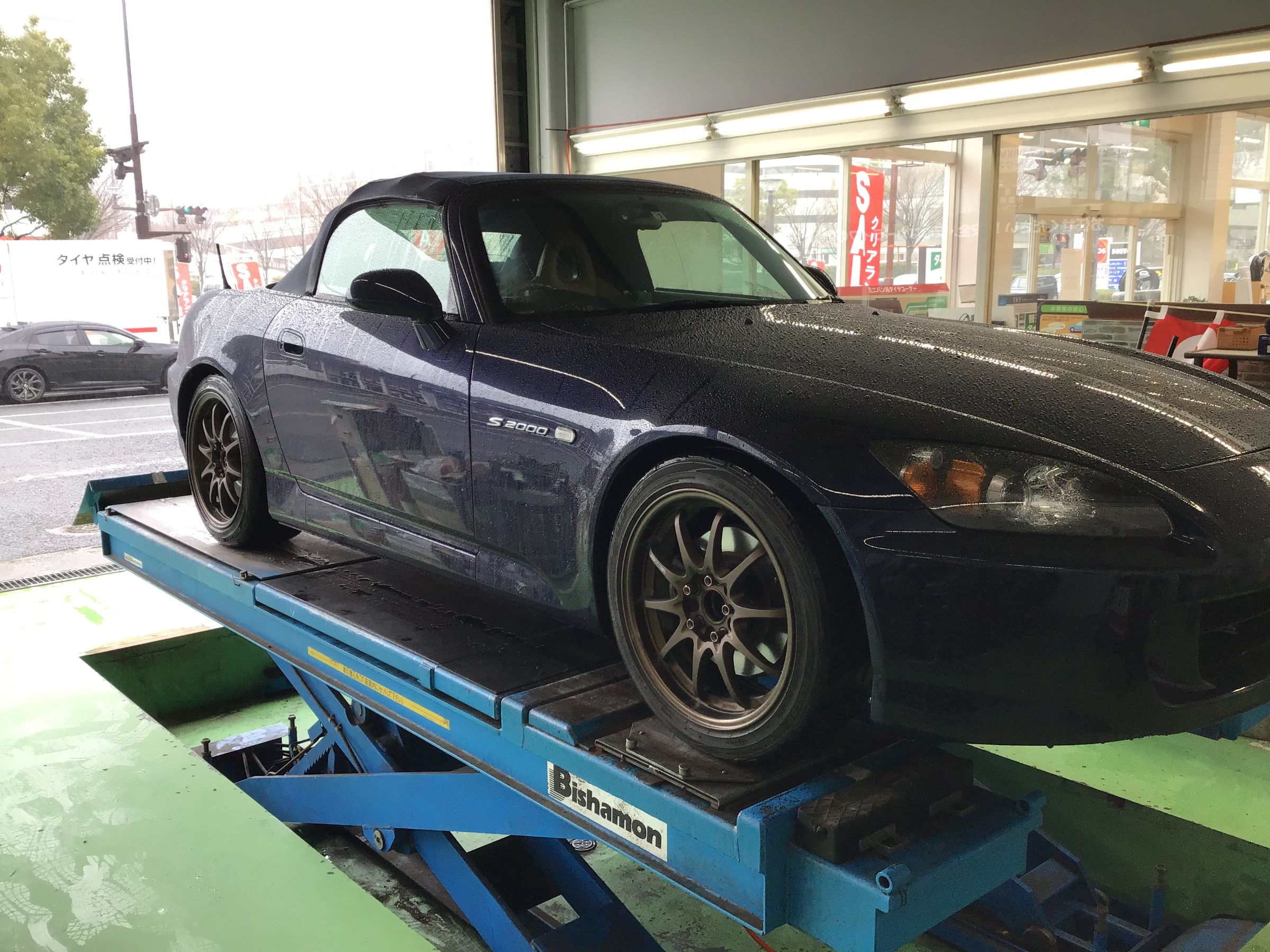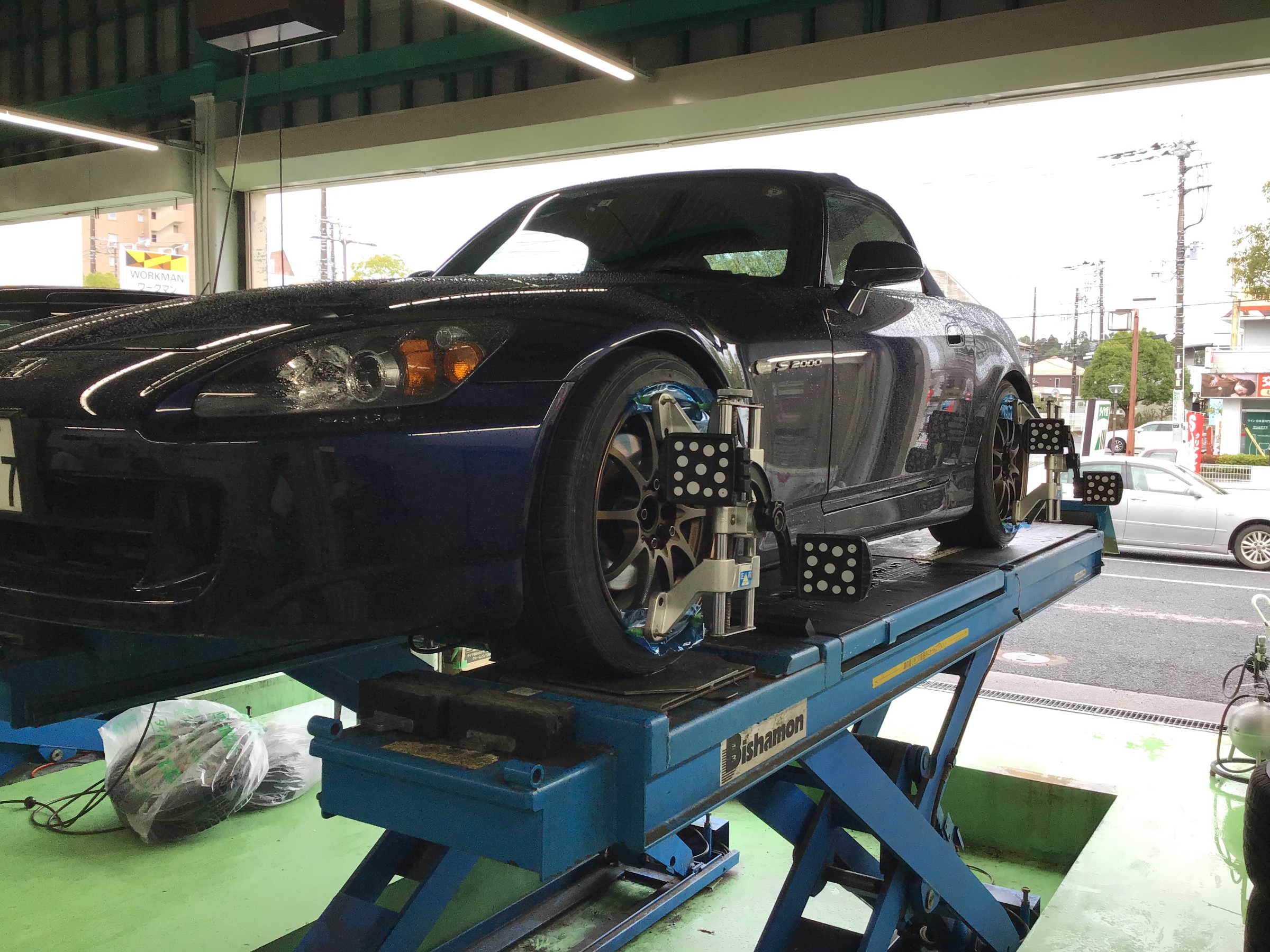 今回は先日作業させていただきましたホンダのスポーツカーS2000のタイヤ交換とアライメント調整のご紹介です。