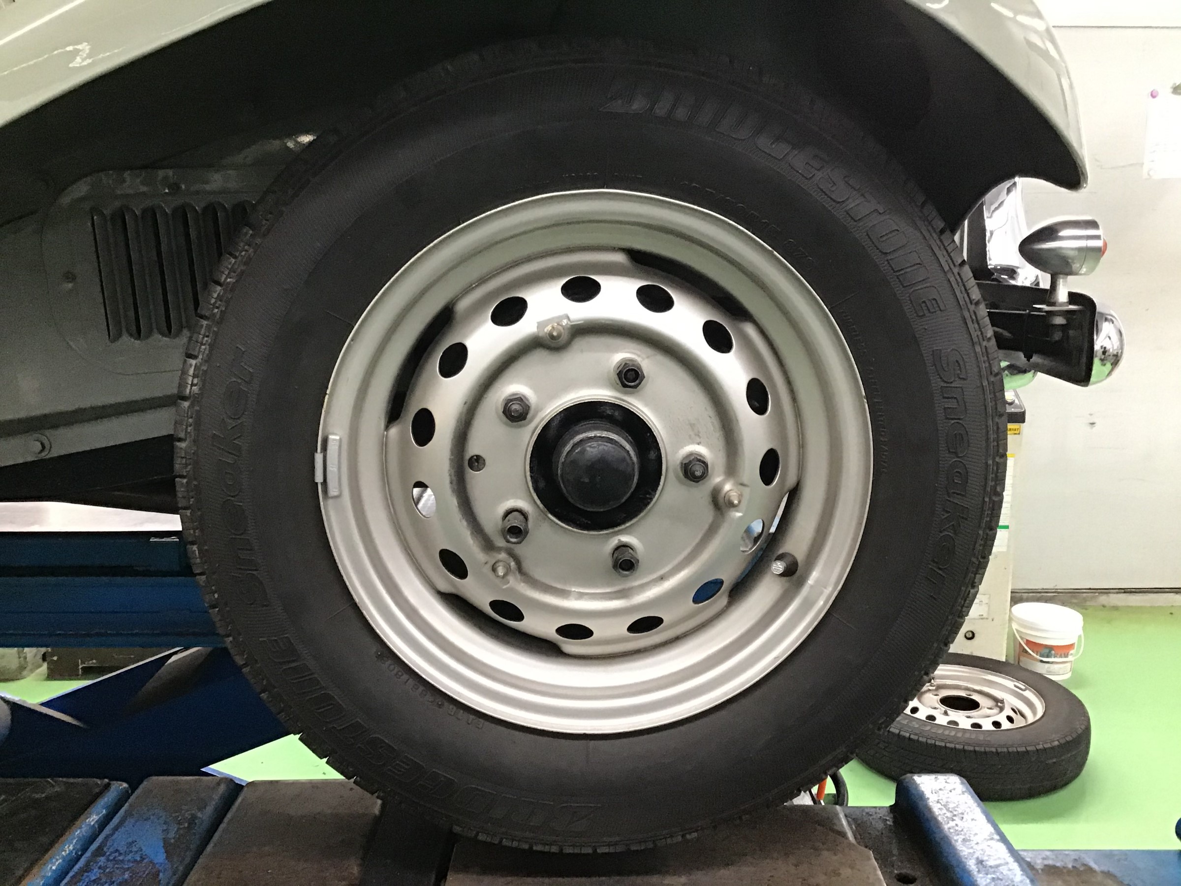 タイヤサイズは165/80R15のスニーカーです。大変めずらしいお車を作業させていただきました。