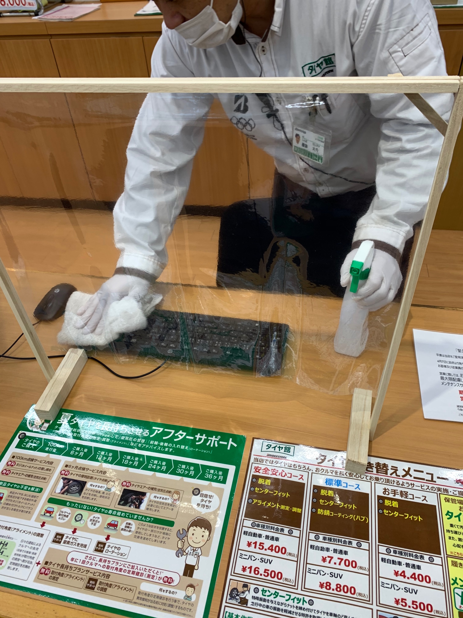 飛沫防止のパーテーションも店長の手作りで置いてあります!
