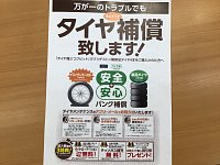 こんにちは! 本日もタイヤ館は元気に営業しております。本日 ご紹介するのはパンク補償です。 タイヤ館ではパンク補償制度がスタートしております。 新品で四本交換させて頂いたお客様対象でタイヤサイズにより金額は異なりますが気になったお客様は お気軽にスタッフまでお尋ねください。 成毛