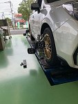 スバルレヴォーグのアライメントのご紹介です! このようにセンサーを装着して調整していきます! 調整風景です。 1台1台お車に合った角度に調整致します!