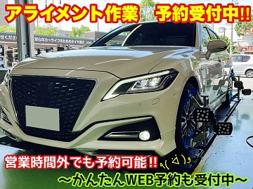 みなさまこんにちは( ・◡・ )♫ アライメント作業に関しまして、多くのお問合せとご予約をありがとうございます( ・◡・ )♫ 今月も!作業ご予約受付中!! 営業時間外でも作業予約が可能!!便利なWEB予約はこちら♫•*¨*•.¸¸♪ 当店は、「アライメント」作業が実施可能な店舗です。 車の機能としてあたりま...