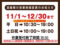 日頃より、タイヤ館成田をご利用いただき誠にありがとうございます。 混雑期に伴い定休日&営業時間の変更があります。 去年までは12月は定休日無しでの営業でしたが、 11月 12月 共に毎週水曜日が定休日となります。 営業時間の変更は下記の通りです。 ▼▽▼▽▼▽▼▽ <期間>11月1日~12月30日 平日 10...