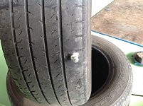突然車がガタガタする。 ハンドルがとられる。 タイヤがへこんでいるような気がする。 そうなったら、パンクかもしれません。 そして、意外と人間、パンクしたことに気づかないものです。 このサイズでも踏んだことにすぐ気づかない場合があります…(;^ω^) きれいに刺さると徐々にしか抜けず乗ってる...