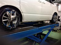 アライメント調整です! アライメントとは、車の骨盤調整とも言われています! より快適、より安心にお乗りいただけます!