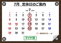 おはようございます( ・◡・ )♫ サッカーを見ていて眠いzzzという方もいるのではないでしょうか??ヾ(´○` ) 暑いですが、今日も元気にがんばりましょう~(。◕0◕。)!! さて♪ 7月の定休日のご案内です。 明日4日(水曜日)は、「定休日」となります。 ご利用のお客様にはご不便をお掛けすることとなりますが、...