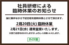こんにちは( ・◡・ )♫ 本日も多くのご来店、誠にありがとうございました。 明日2月20日(火曜日)は 【休業日】となります。 ご利用のお客様にはご不便をお掛けすることとなりますが、 何卒ご理解、ご了承のほど、よろしくお願い申し上げます。 尚、21日(水曜日)は営業いたします。 皆様のお越しをスタ...