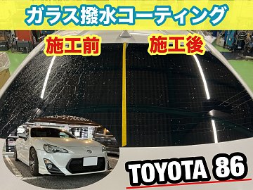 こんにちは! タイヤ館成田店のHPをご覧いただき誠にありがとうございます。 本日は【ガラス撥水作業】をご紹介させていただきます。 今回作業するお車は【トヨタ/86】です! 雨の日の運転中、ガラスに水が残って、 ワイパーを動かしてもスッキリしない!なんて思ったことはありませんか?? ガラ...