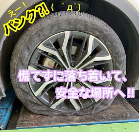 みなさまこんにちは( ・◡・ )♫ 週末はおクルマでお出かけの方も多く、パンクトラブルでのご来店が急増いたします。゚(*´□`)゚。 お出かけ先で、「え?タイヤがつぶれてる?!」なんてことも…。 避けきれないトラブルではありますが、万が一、パンクが確認されたら、慌てずに落ち着いて安全な場所への移動...