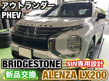 こんにちは! タイヤ館成田店のHPをご覧いただき誠にありがとうございますm(_ _"m) 本日は【タイヤ交換作業】をご紹介させていただきます。 今回作業するお車は【三菱/アウトランダーPHEV】です! 〇お選びいただいたタイヤがこちら! BRIDGESTONE ALENZA LX200 255/45R20 【性能】 ①乗り心地 ⇒車...
