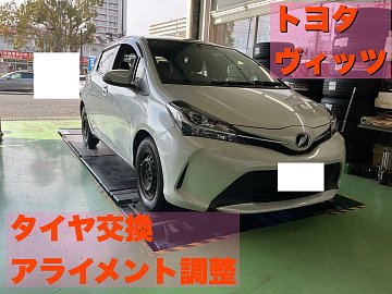 本日のご紹介はトヨタ、ヴィッツのタイヤ交換、アライメント調整です。 買って頂いたタイヤを長く使用して頂く為、アライメント調整実施致しました。 ホイール4箇所にセンサーを取付て測定致します。 タイヤの取付角度を真っ直ぐにトータルで燃費の抑制、摩耗の抑制、車本来の性能も取り戻します。 ...