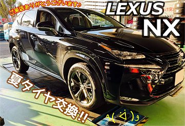 みなさまこんにちは( ・◡・ )♫ 本日は【レクサス/NX】の夏タイヤ交換作業でございます(*・∀・)ノ いまの季節は、冬用のスタッドレスタイヤのお話が多くなりますが、「スタッドレスタイヤは必要ないよ?」というお客様! 夏用タイヤの新品交換もじゃんじゃん承っております(o・∀・)b゙ ぜひお気軽にご相談く...