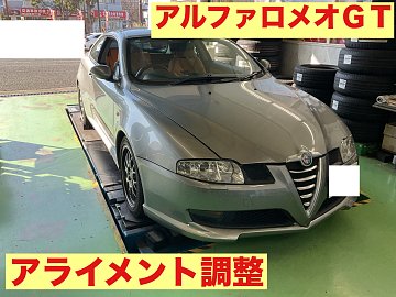 本日の、ご紹介はアルファロメオGTのアライメント調整ご紹介です。 新規のお客様で足回りを交換してのご来店でした。かっこいいですね‼️ では早速測定の準備をしていきます。 四輪にセンサーをセットしていきます。 測定後はこちら 矢印の部分を調整してタイヤの向きを真っ直ぐにしていきます。 こ...