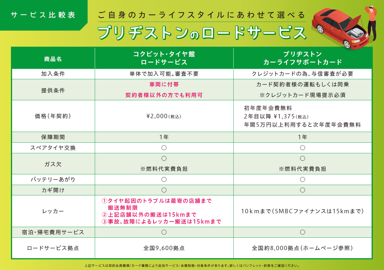 ブリヂストンカーライフサポートカードに入会が必要でした。