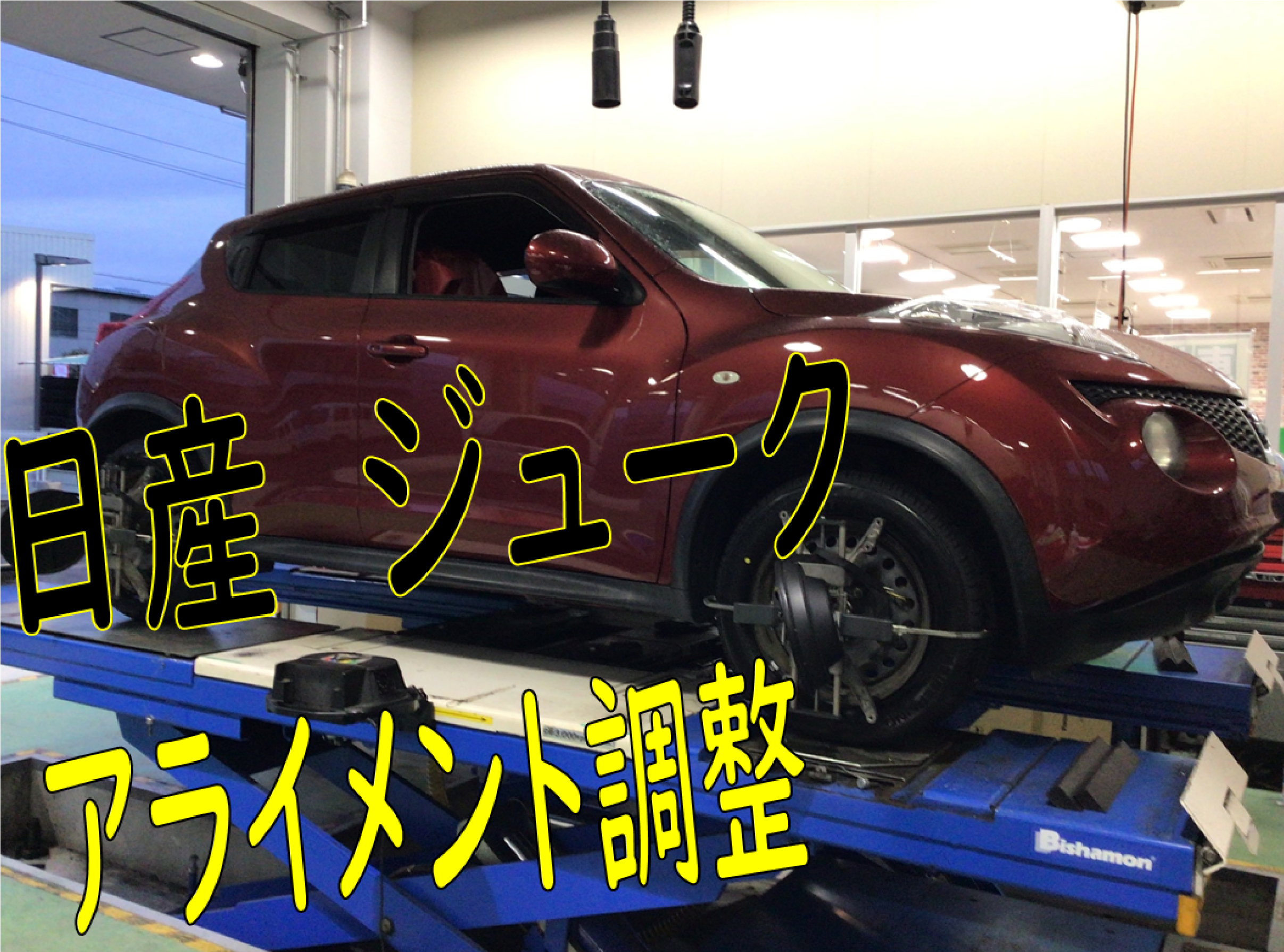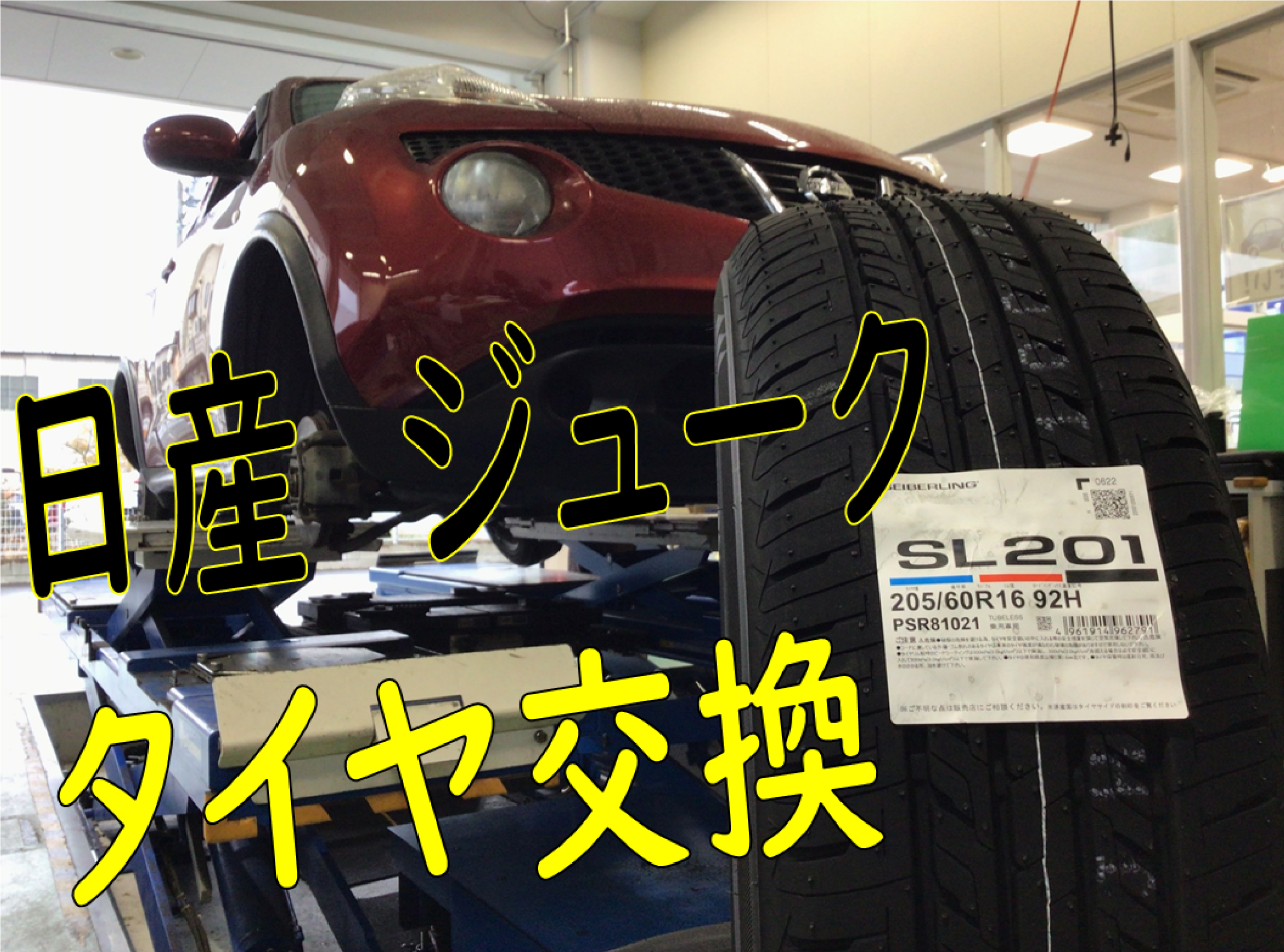 今回は、「日産 ジューク」タイヤ交換&アライメント調整の