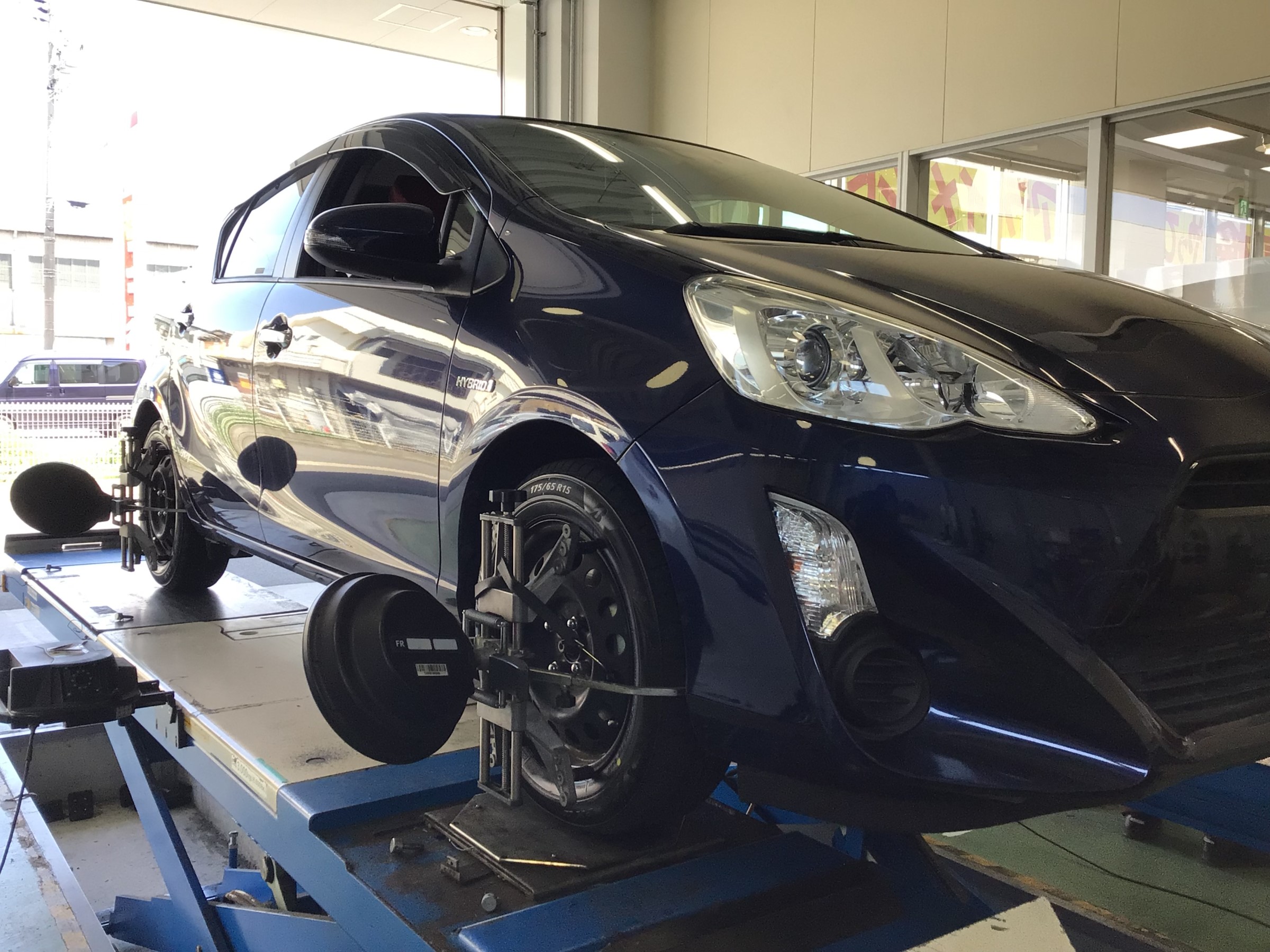 今回は、「トヨタ アクア」タイヤ交換&アライメント調整