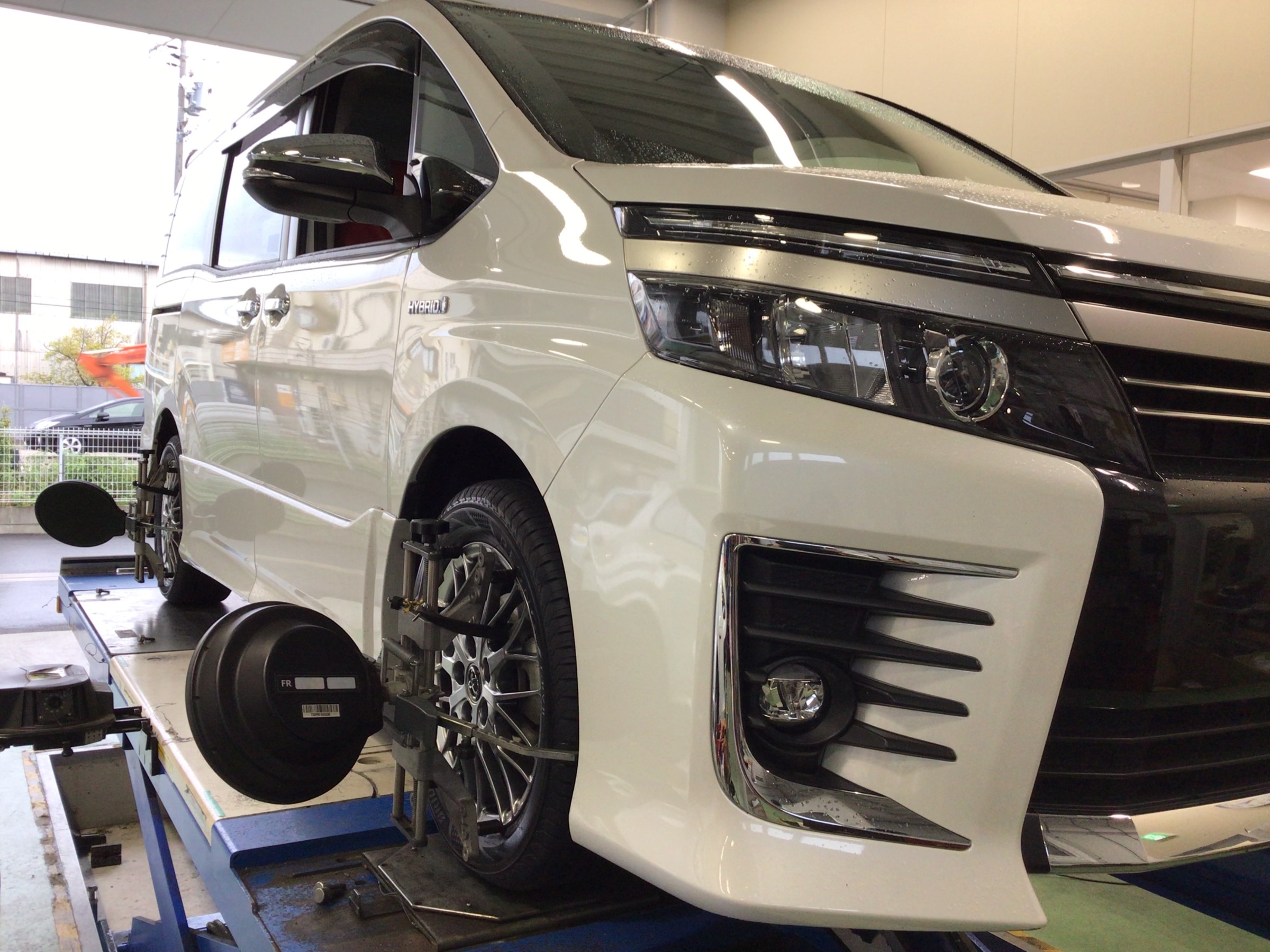 今回は、「トヨタ VOXY」タイヤ後のアライメント測定・調整です。