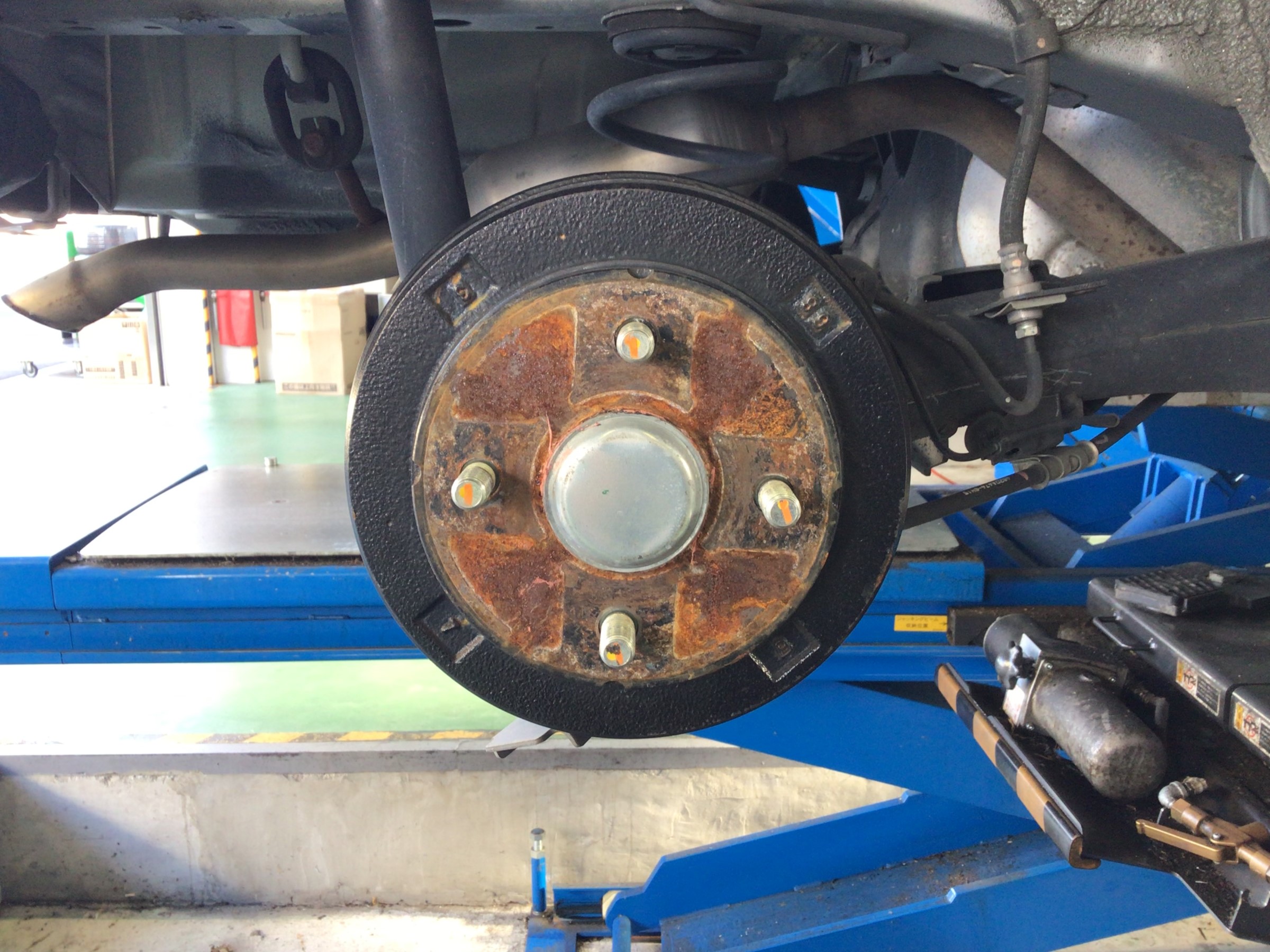 こちらの写真は後ろのタイヤの取付面ですがかなり錆びが進行してますね…