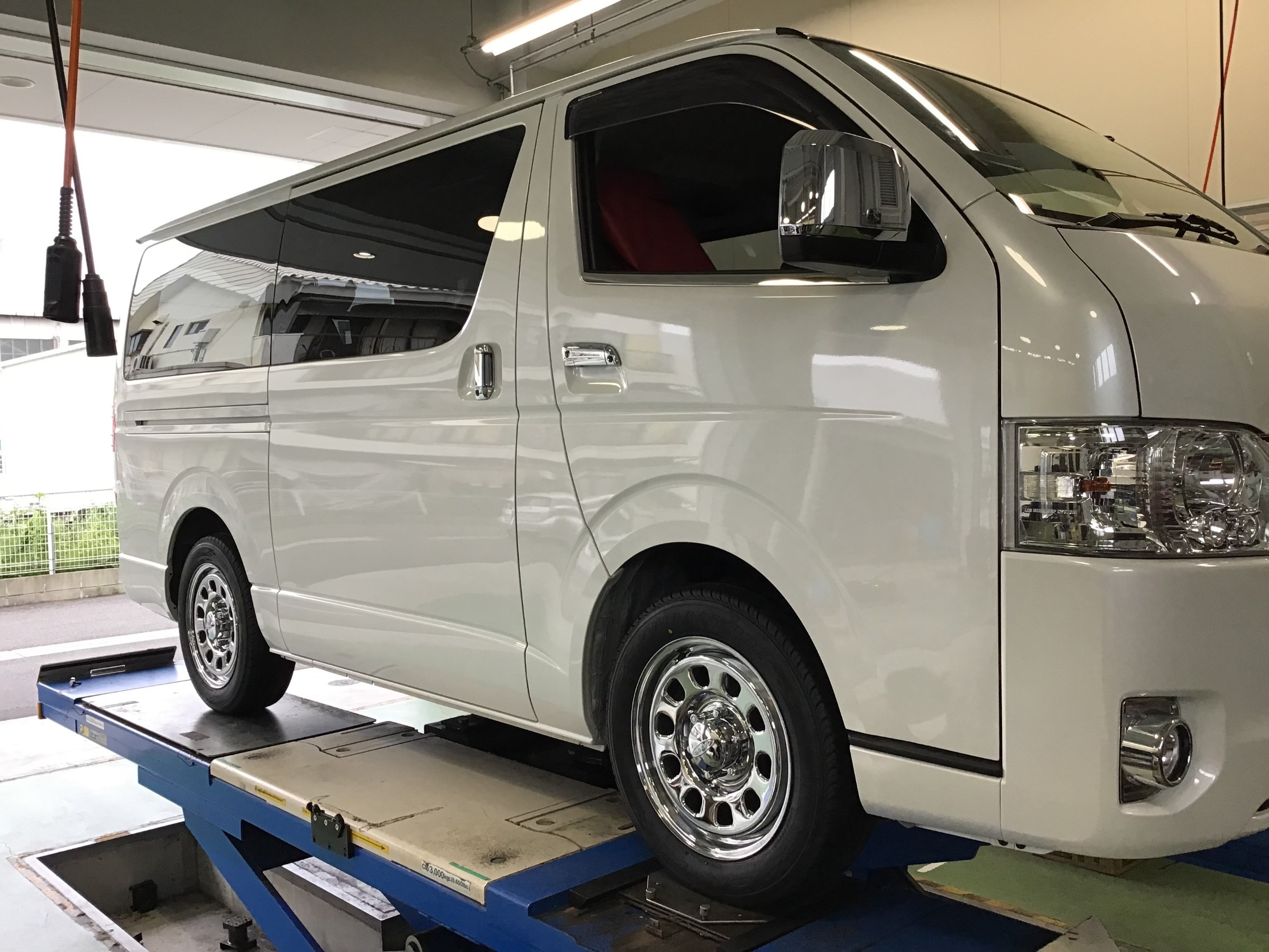 今回は、トヨタ ハイエース タイヤ・ホイール交換&アライメント調整の作業です。