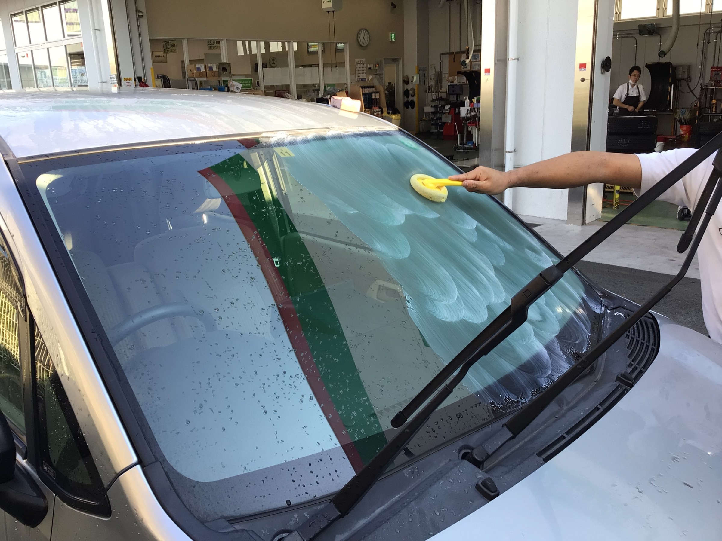 スバル ステラ フロントガラス撥水コート 作業