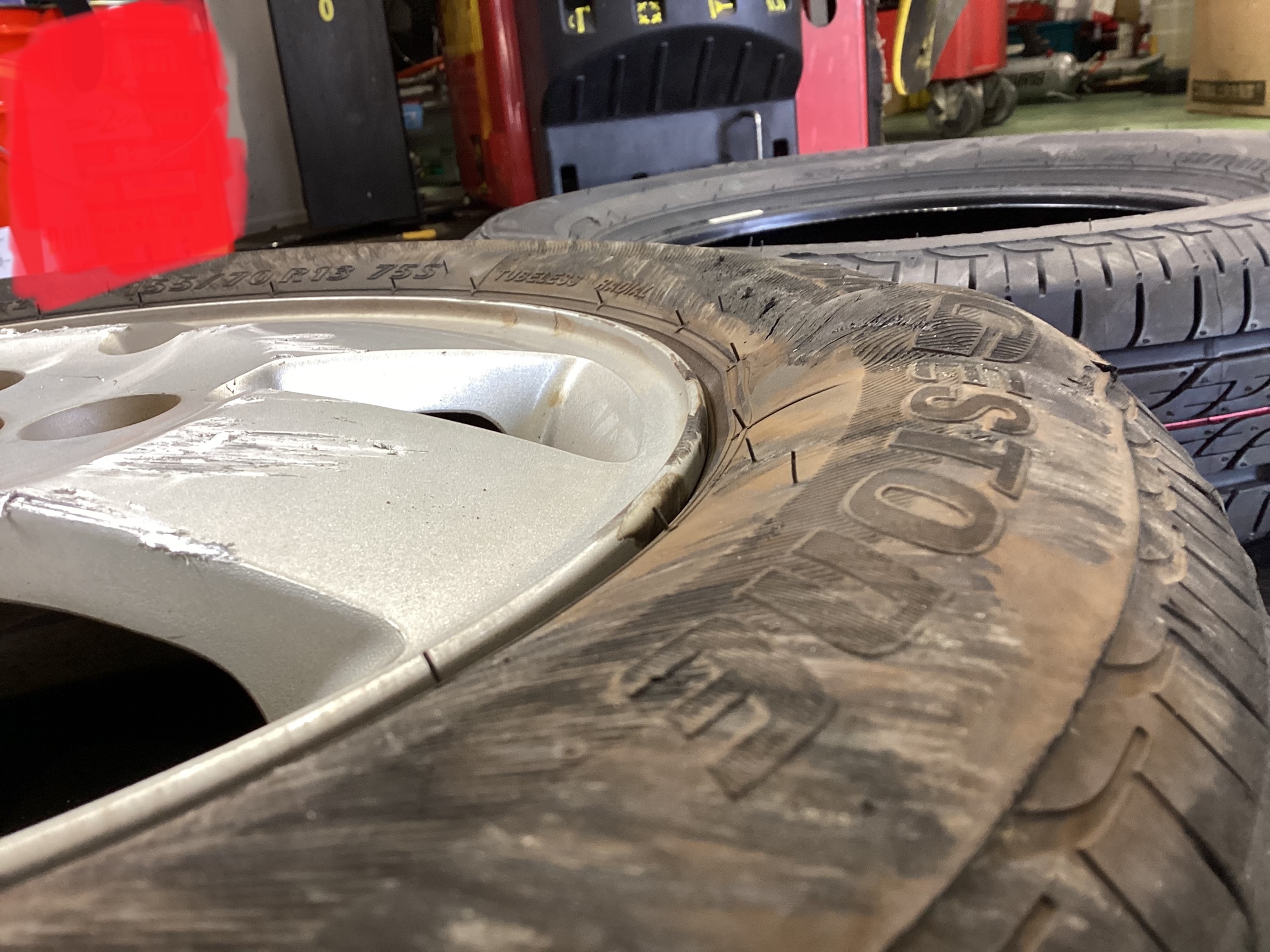 これはタイヤ側面をぶつけてしまいタイヤ内部の骨格が傷つき