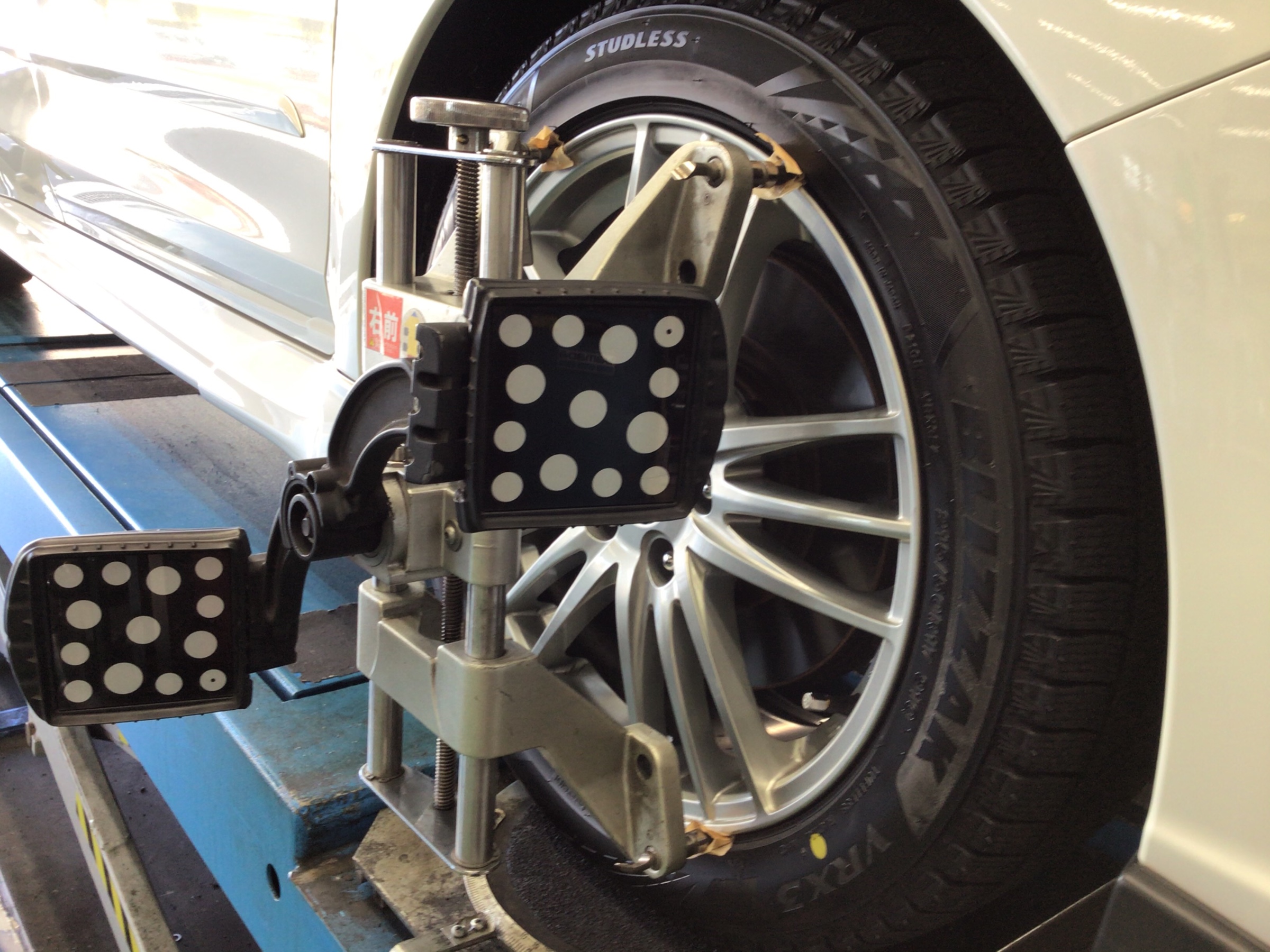 冬に備え、スタッドレスタイヤをご購入いただきました。同時に、スタッドレスタイヤの性能をしっかり引き出し発揮できるようにアライメント調整作業も実施いたしました。