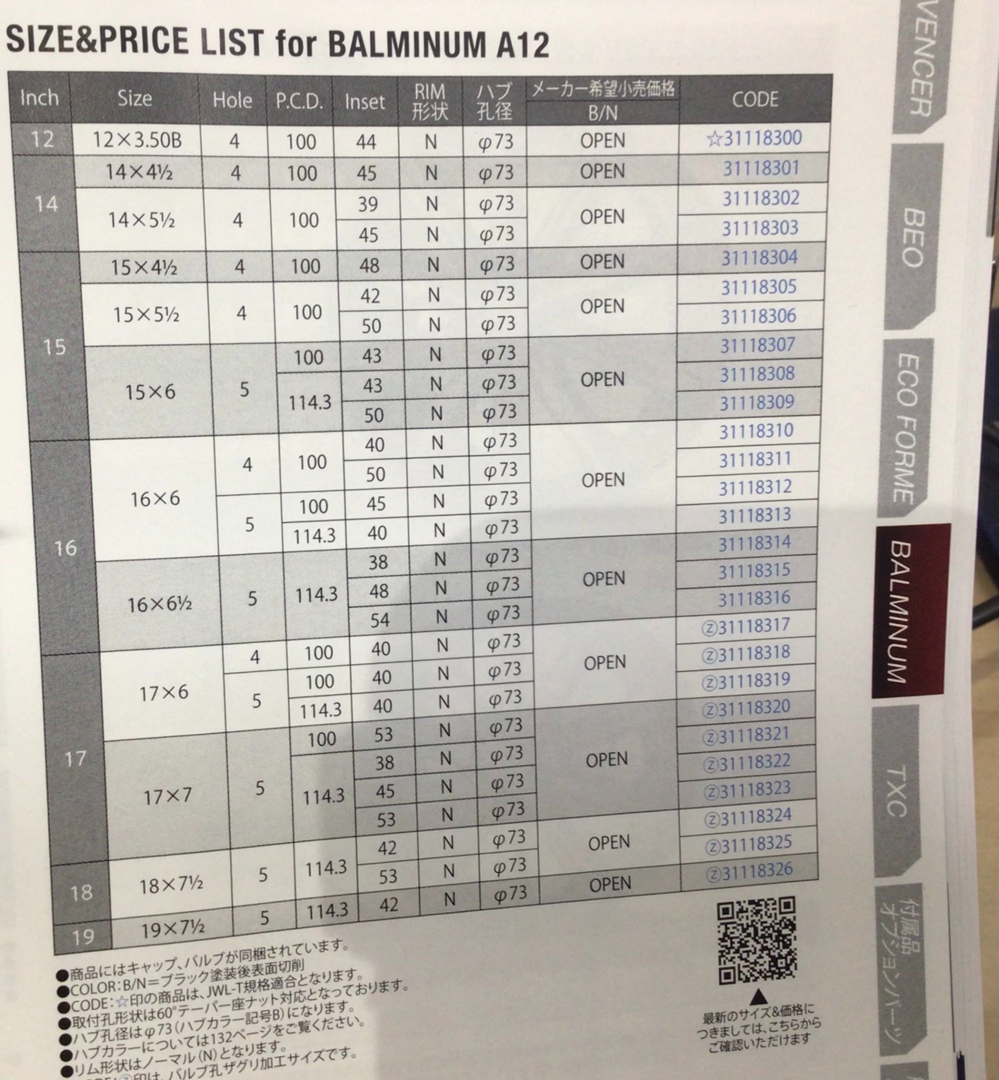 ホイール名:BALMINUM A12 (バルミナ エー12)